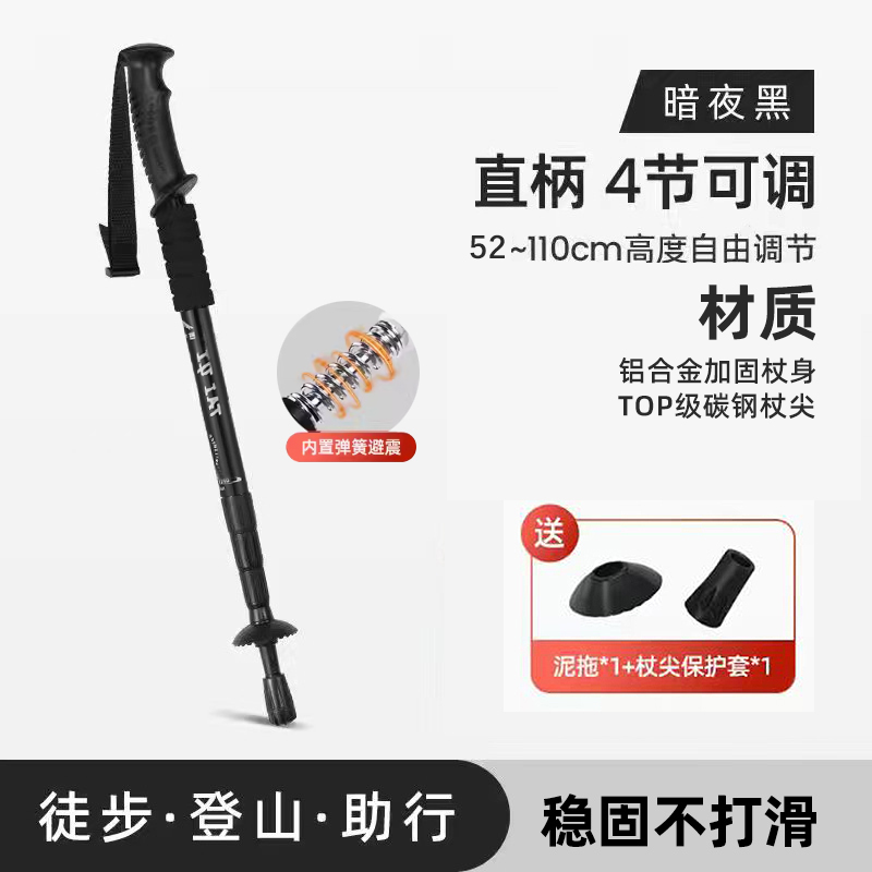 • 2개 팩 - 업그레이드된 4섹션 텔레스코픽 모델, 직선 핸들 검정색 52-110cm(충격 흡수 시스템 내장)