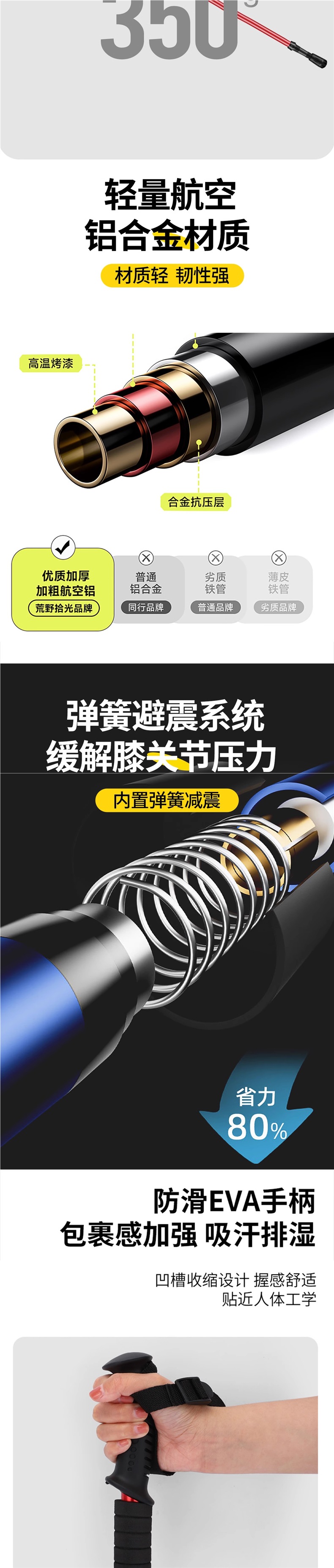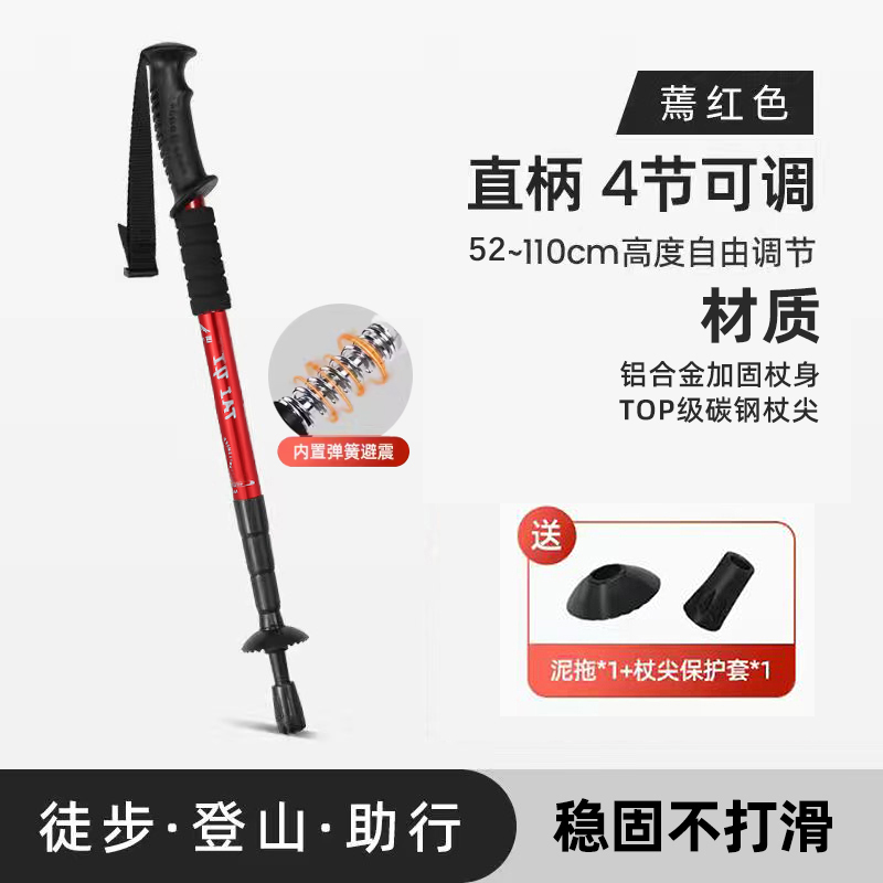 • 2개 팩 - 업그레이드된 4섹션 텔레스코픽 모델, 직선 핸들 레드 52-110cm(충격 흡수 시스템 내장)
