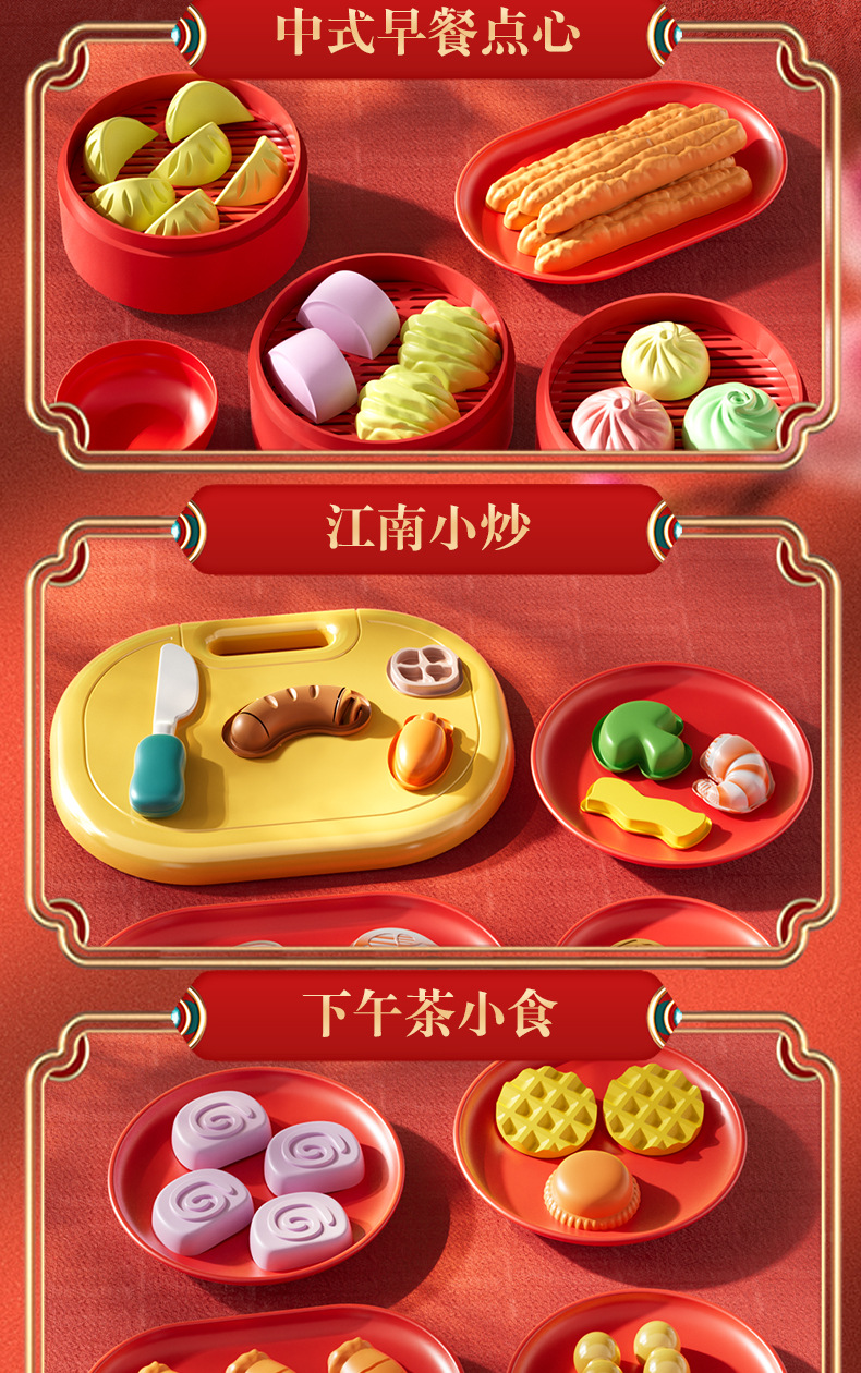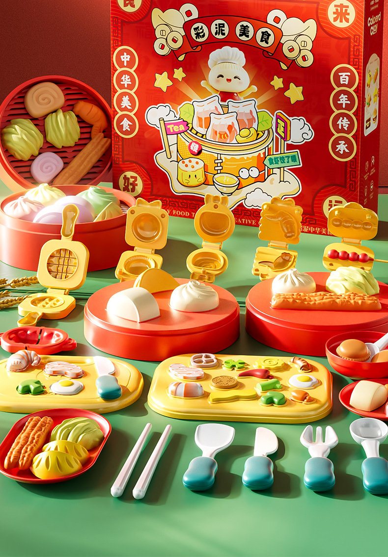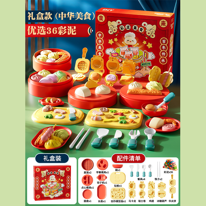중국 음식 플라스틱 세트 국가 유행 컬러 진흙 밀가루 금형 도구 어린이 아기 놀이 주방 장난감스토어 가기