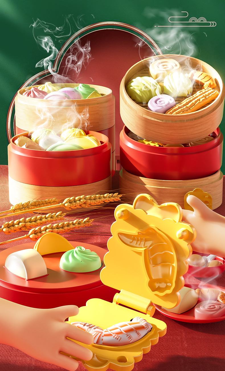 중국 음식 플라스틱 세트 국가 유행 컬러 진흙 밀가루 금형 도구 어린이 아기 놀이 주방 장난감