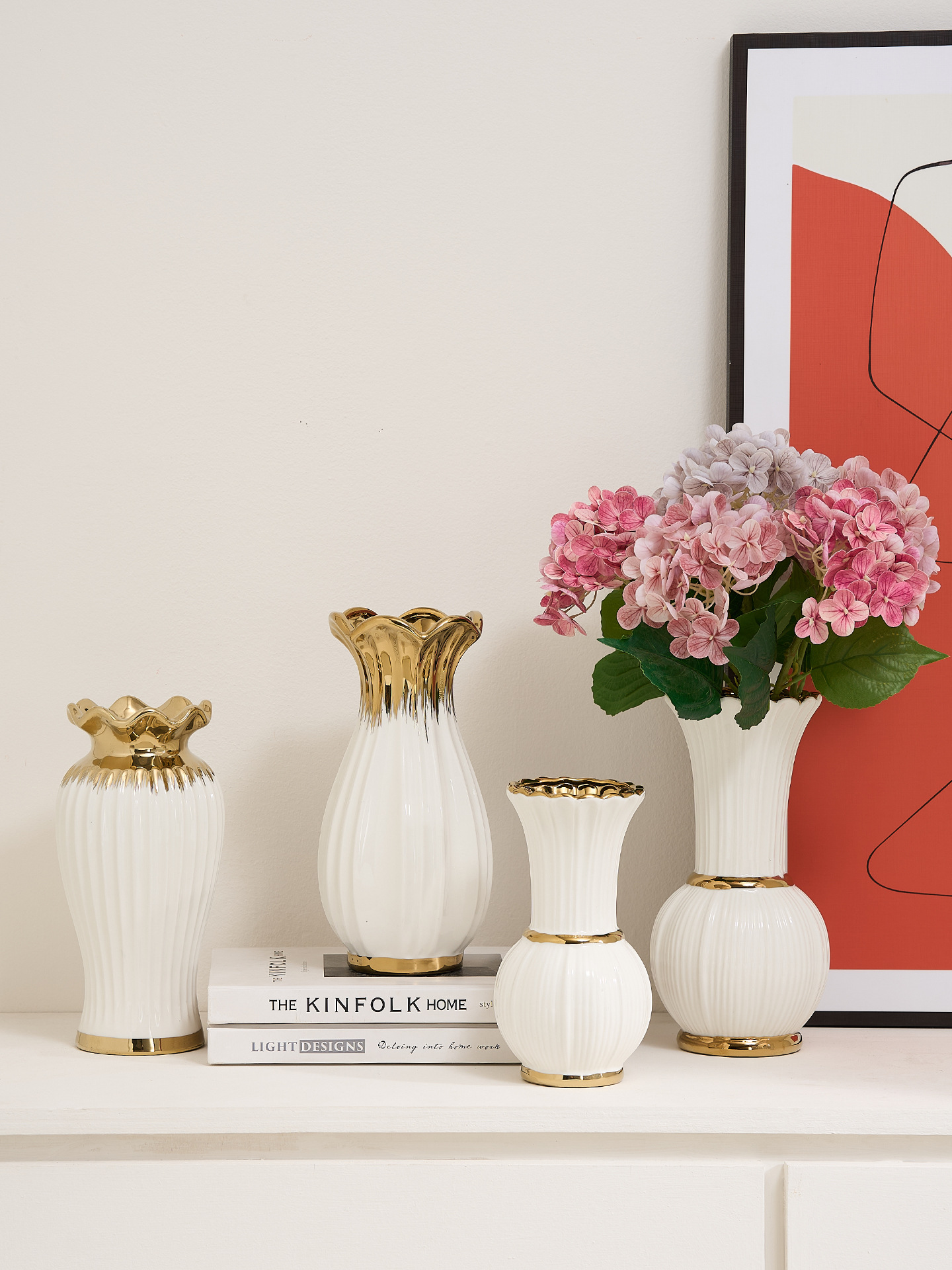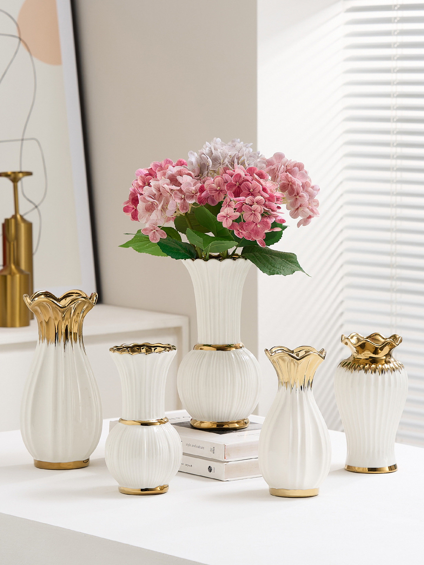 크림 스타일 세라믹 꽃병 흰색 고급 수생 장미 꽃꽂이 복고풍 프랑스 거실 테이블 장식 예술