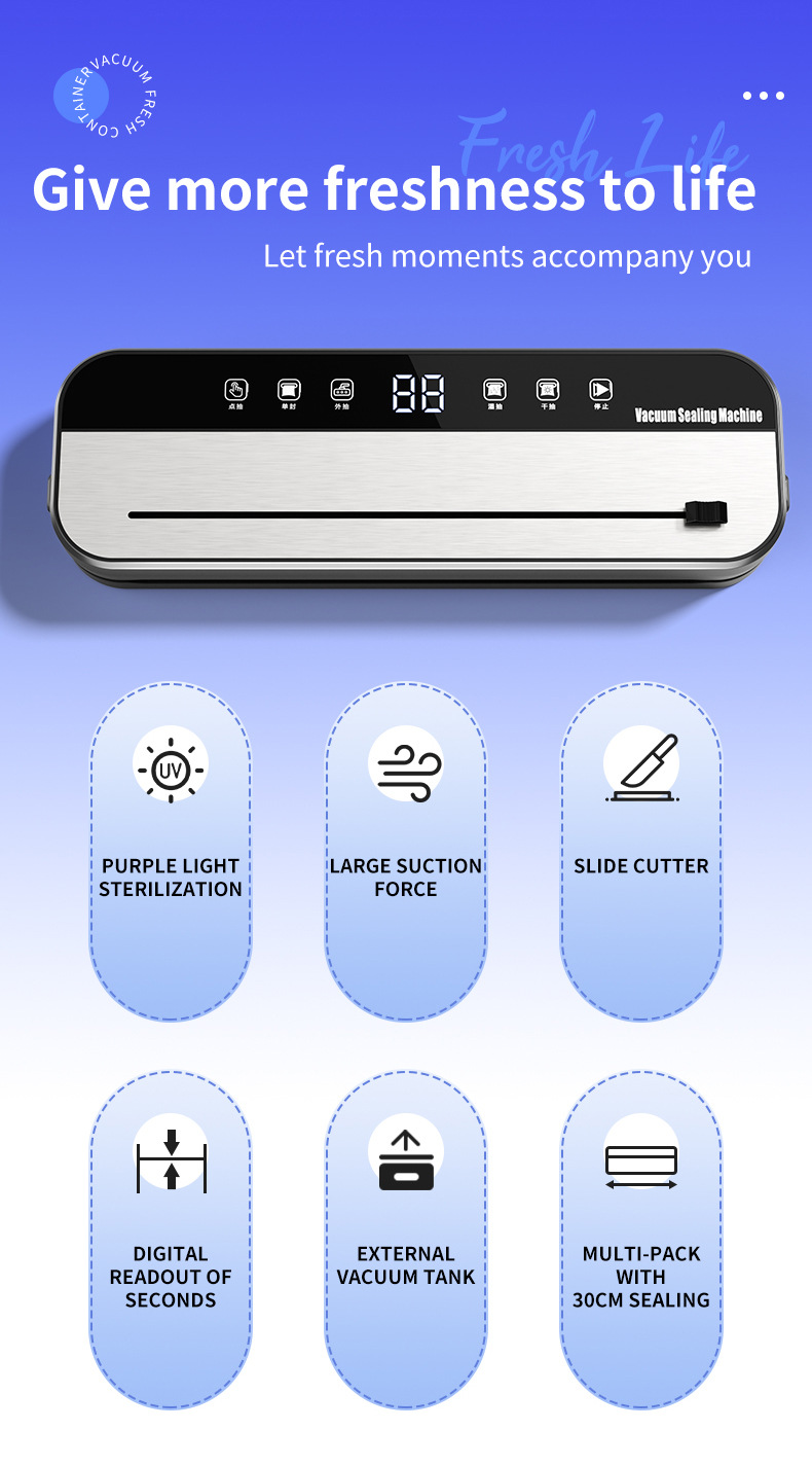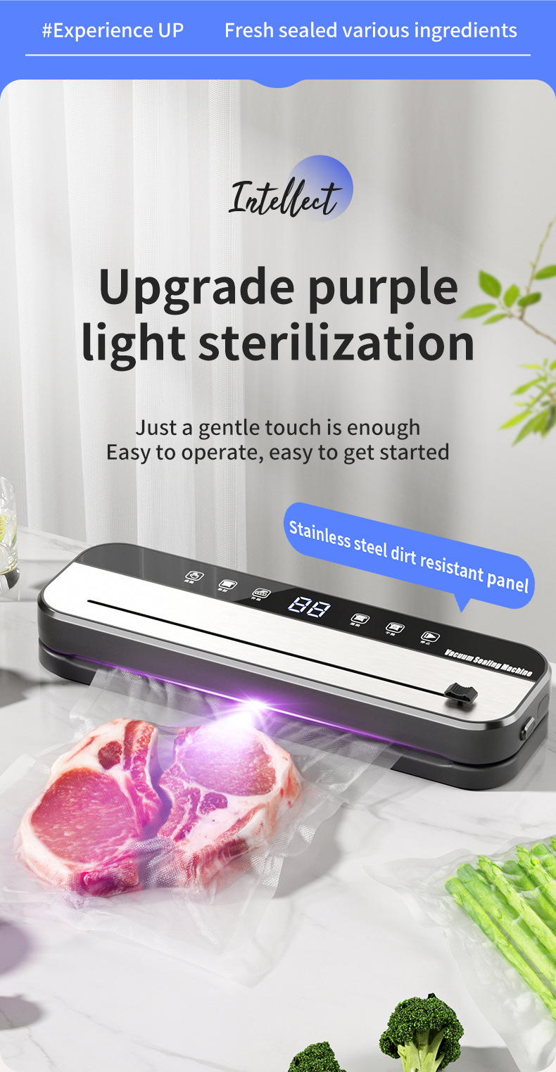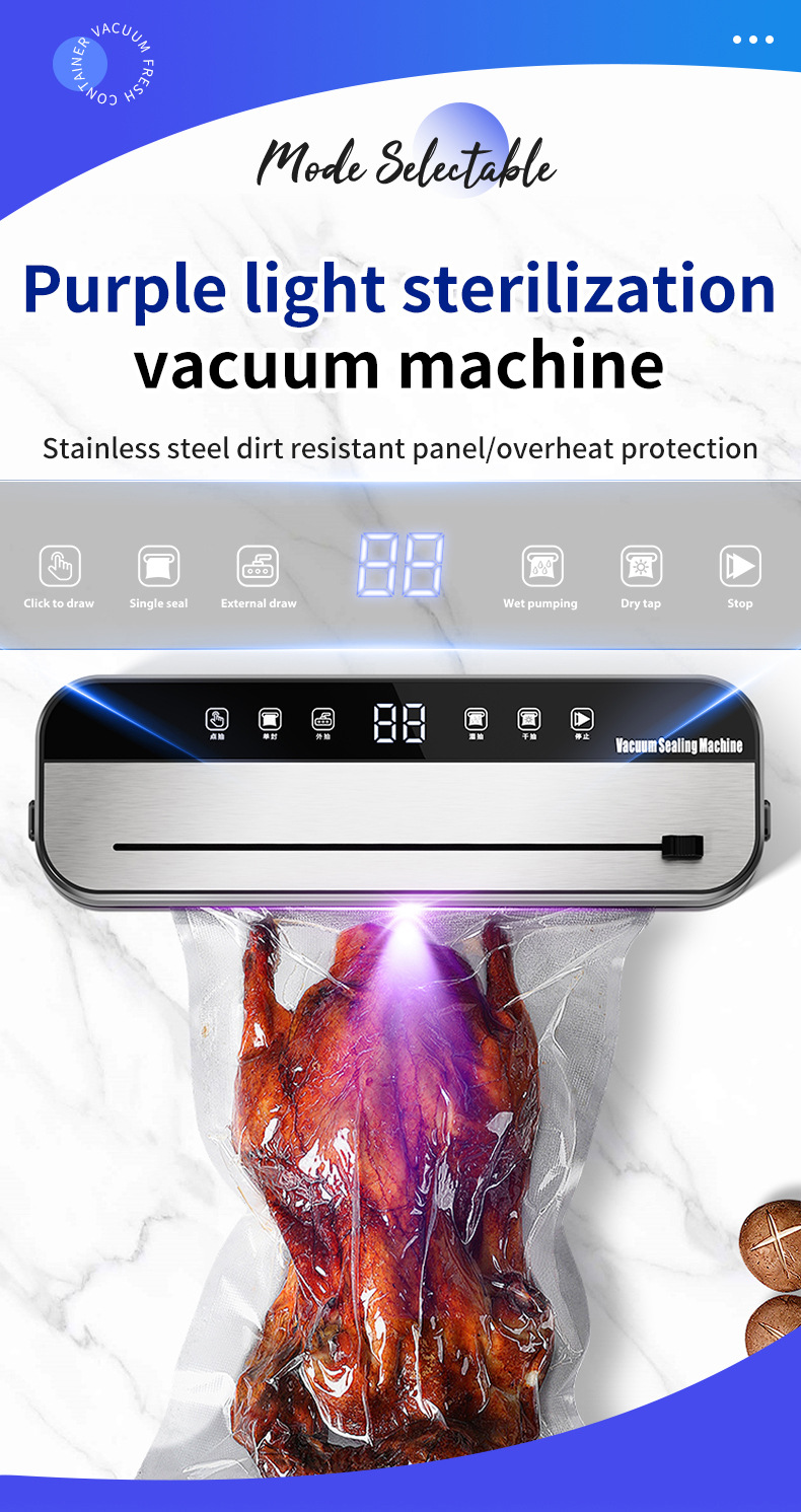 스테인레스 스틸 진공 밀봉 기계 가정용 보라색 빛 살균 식품 플라스틱 밀봉 기계 신선 유지 기계 습식 및 건식 이중 용도 기계스토어 가기