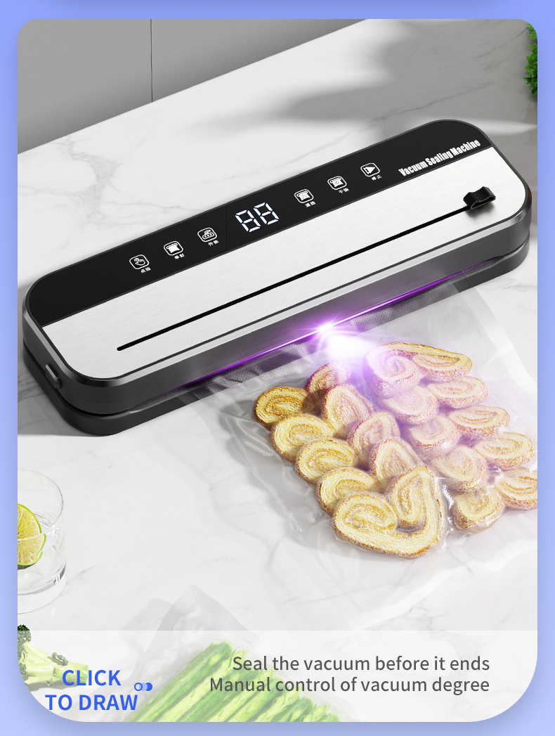 스테인레스 스틸 진공 밀봉 기계 가정용 보라색 빛 살균 식품 플라스틱 밀봉 기계 신선 유지 기계 습식 및 건식 이중 용도 기계