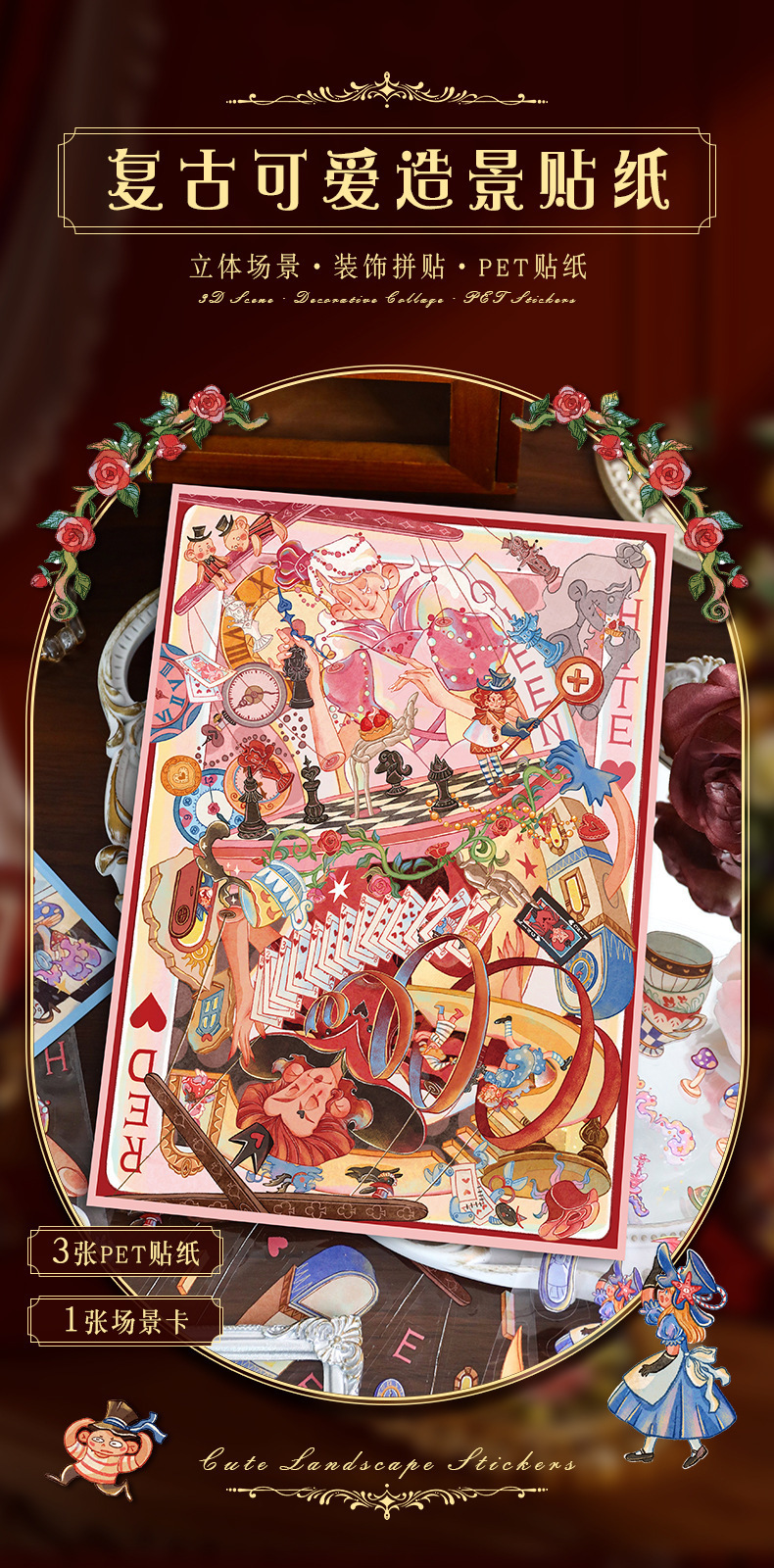 새로운 조경 스티커 대형 3D 입체 캐빈 스티커 앨리스 미니어처 장면 diy 감압 장난감 스티커
