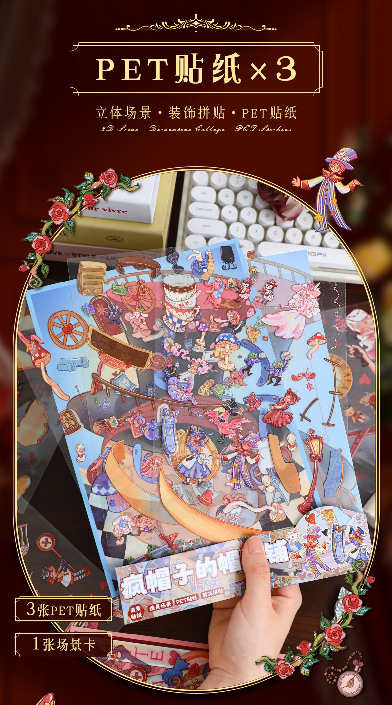 새로운 조경 스티커 대형 3D 입체 캐빈 스티커 앨리스 미니어처 장면 diy 감압 장난감 스티커스토어 가기