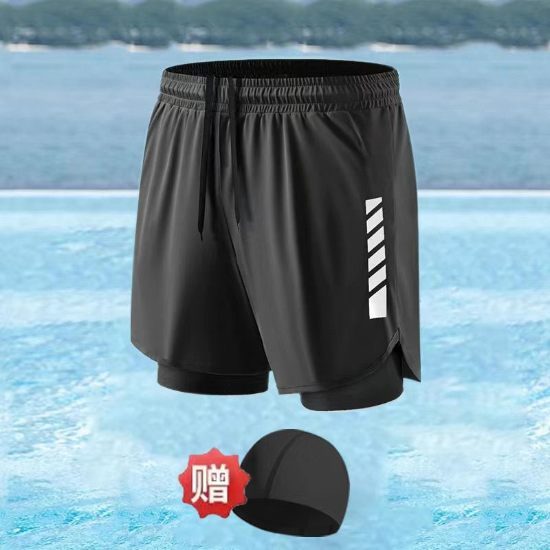 • A10 블랙 더블 레이어 수영 트렁크 i [무료 수영모]