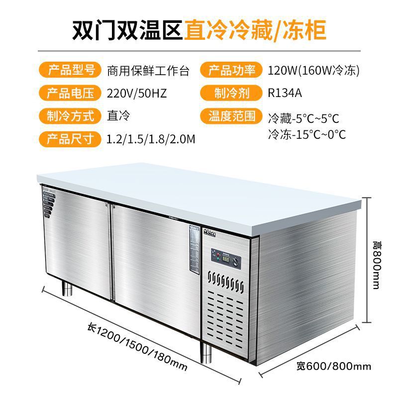 냉장 작업대 냉동고 상업용 신선 유지 플랫 냉동고 스테인레스 스틸 작업대 냉장고 주방 냉동 이중 온도 냉동고스토어 가기