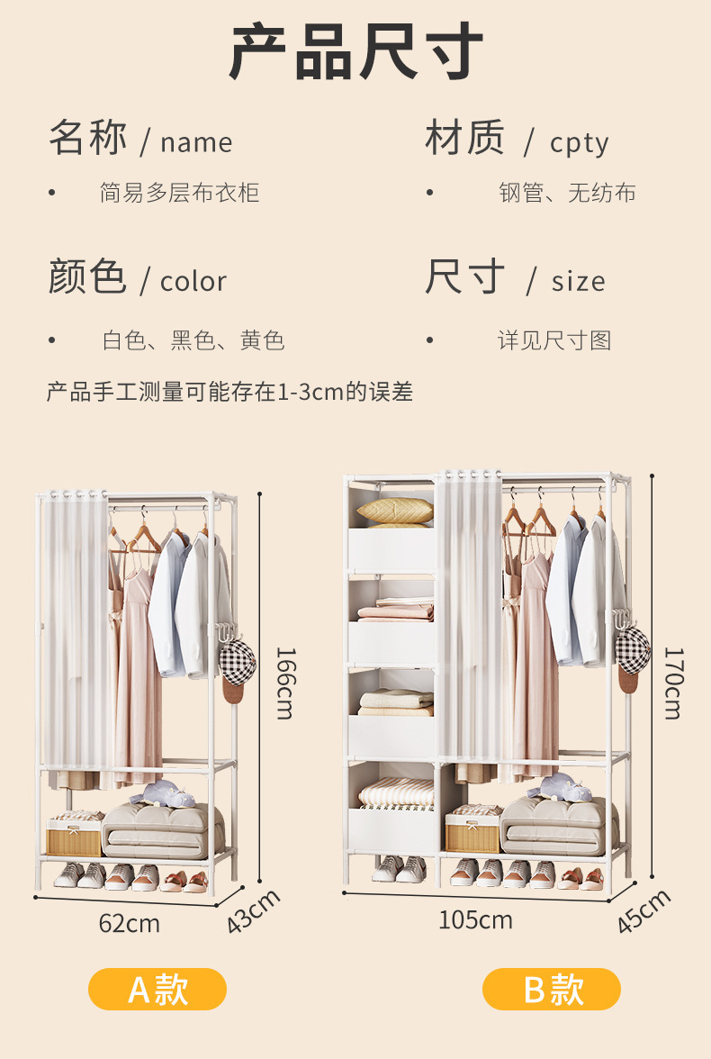 간단한 임대 주택 수납 옷장 바닥부터 천장까지 가정용 접이식 두꺼운 강철 파이프 조립 옷장 강화 간단한 옷장스토어 가기