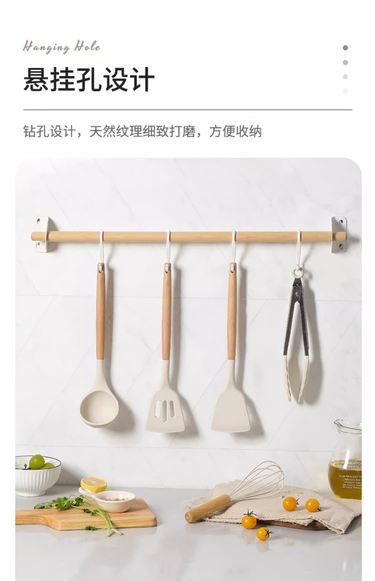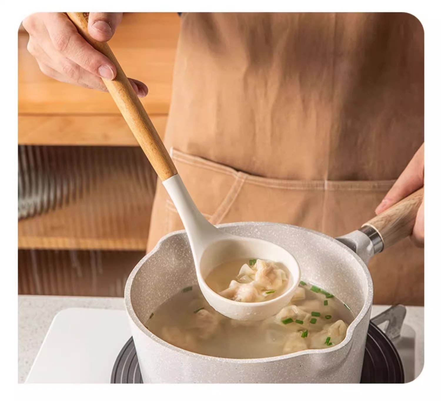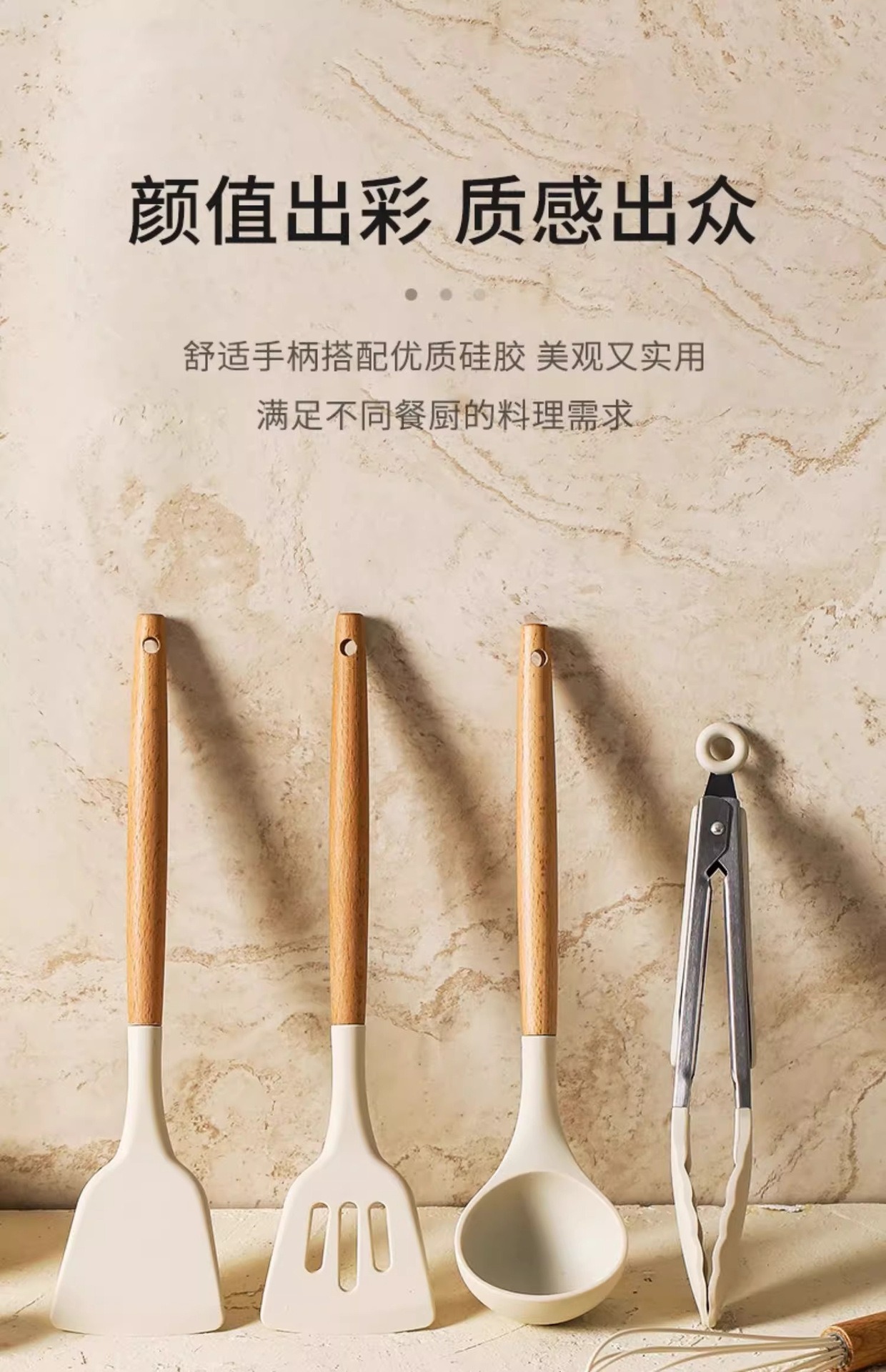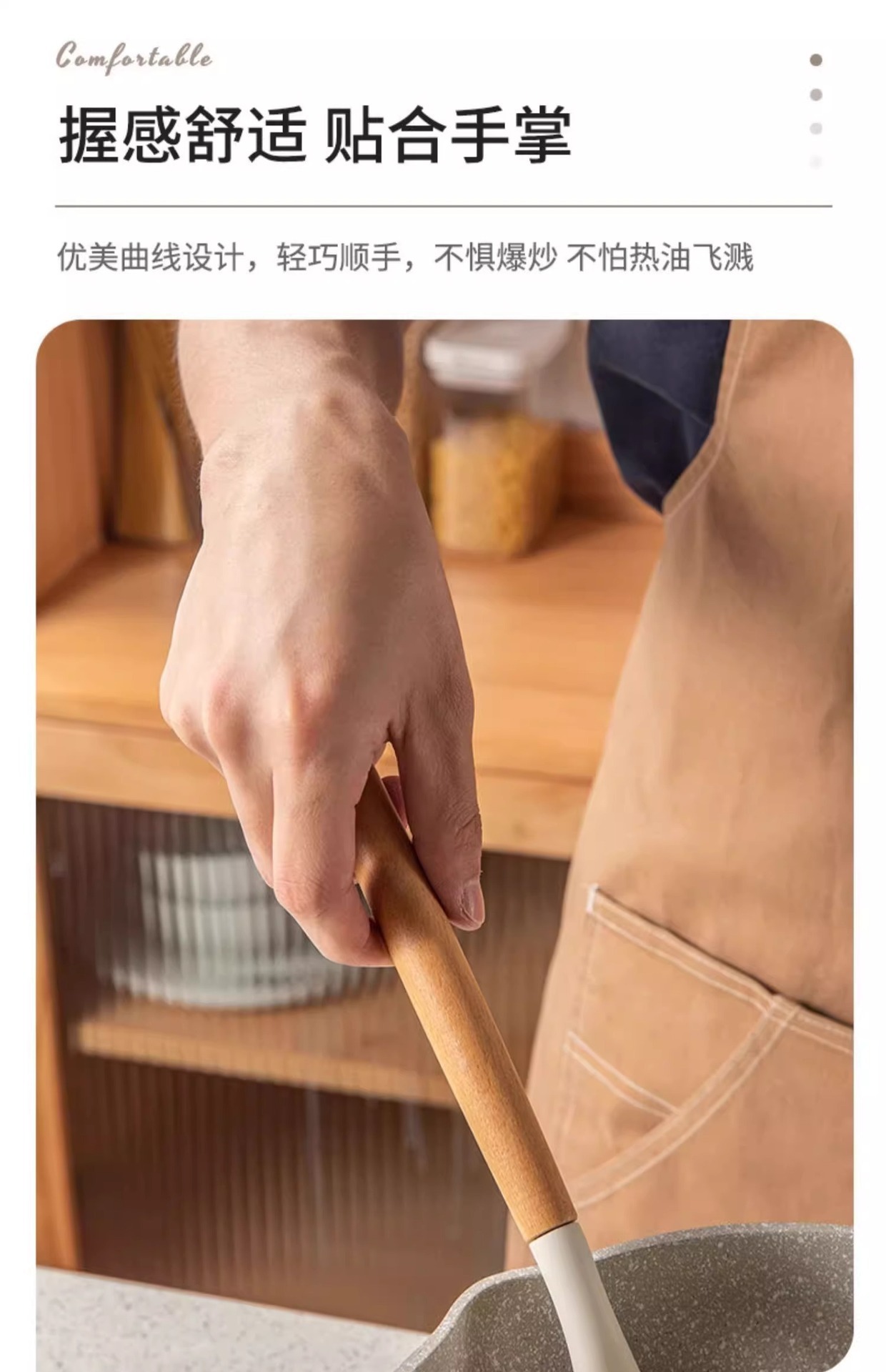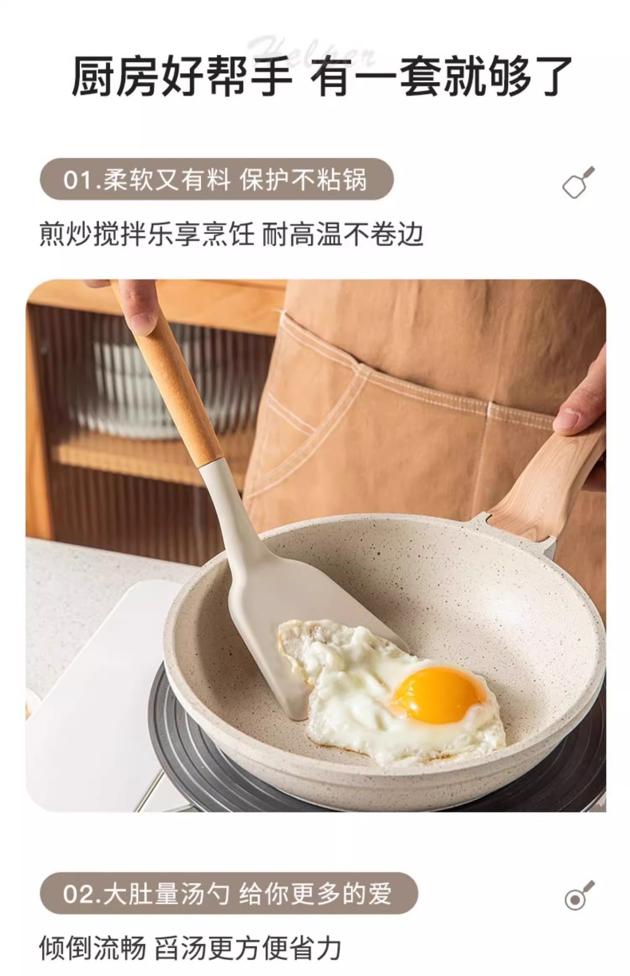 주방 3종 세트, 가정 요리, 요리 및 청소용 고온 방지 나무 손잡이 수프 스푼, 붙지 않는 주걱, 스푼, 프라이팬 주걱
