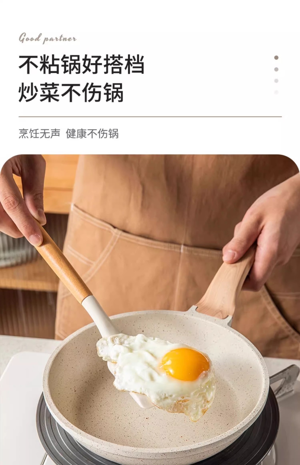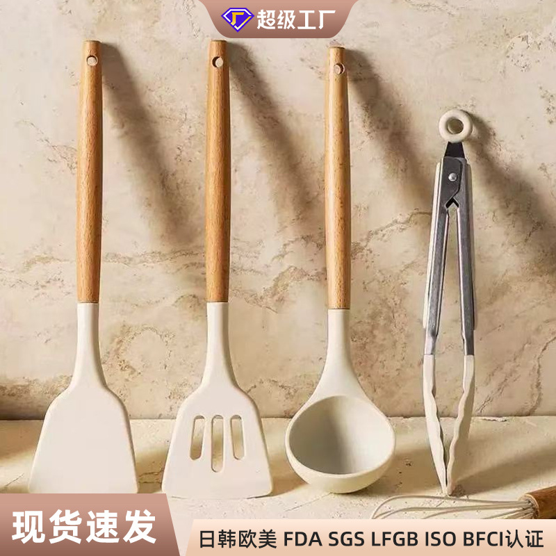 주방 3종 세트, 가정 요리, 요리 및 청소용 고온 방지 나무 손잡이 수프 스푼, 붙지 않는 주걱, 스푼, 프라이팬 주걱스토어 가기