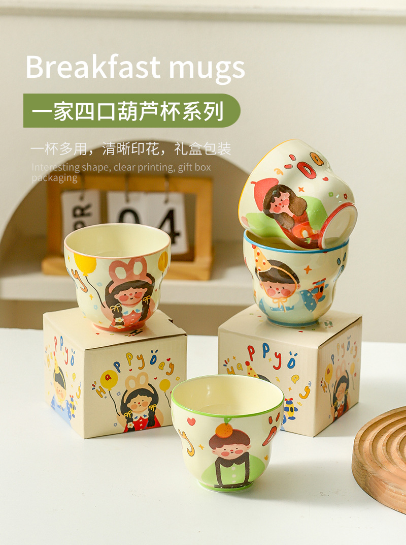 커피 컵, 4인 가족, 가정용 세라믹 컵, 귀여운 만화 아침 식사 컵, 이벤트 작은 선물, 기념품 컵