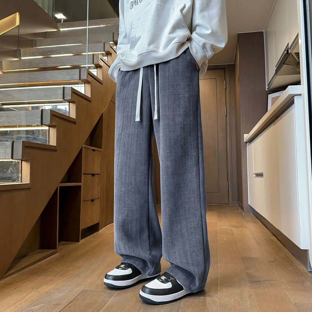 새로운 남성 캐주얼 트렌디 벨벳 두꺼운 따뜻한 캐주얼 바지 남성 가을, 겨울 느슨한 스트레이트 와이드 레그 바지