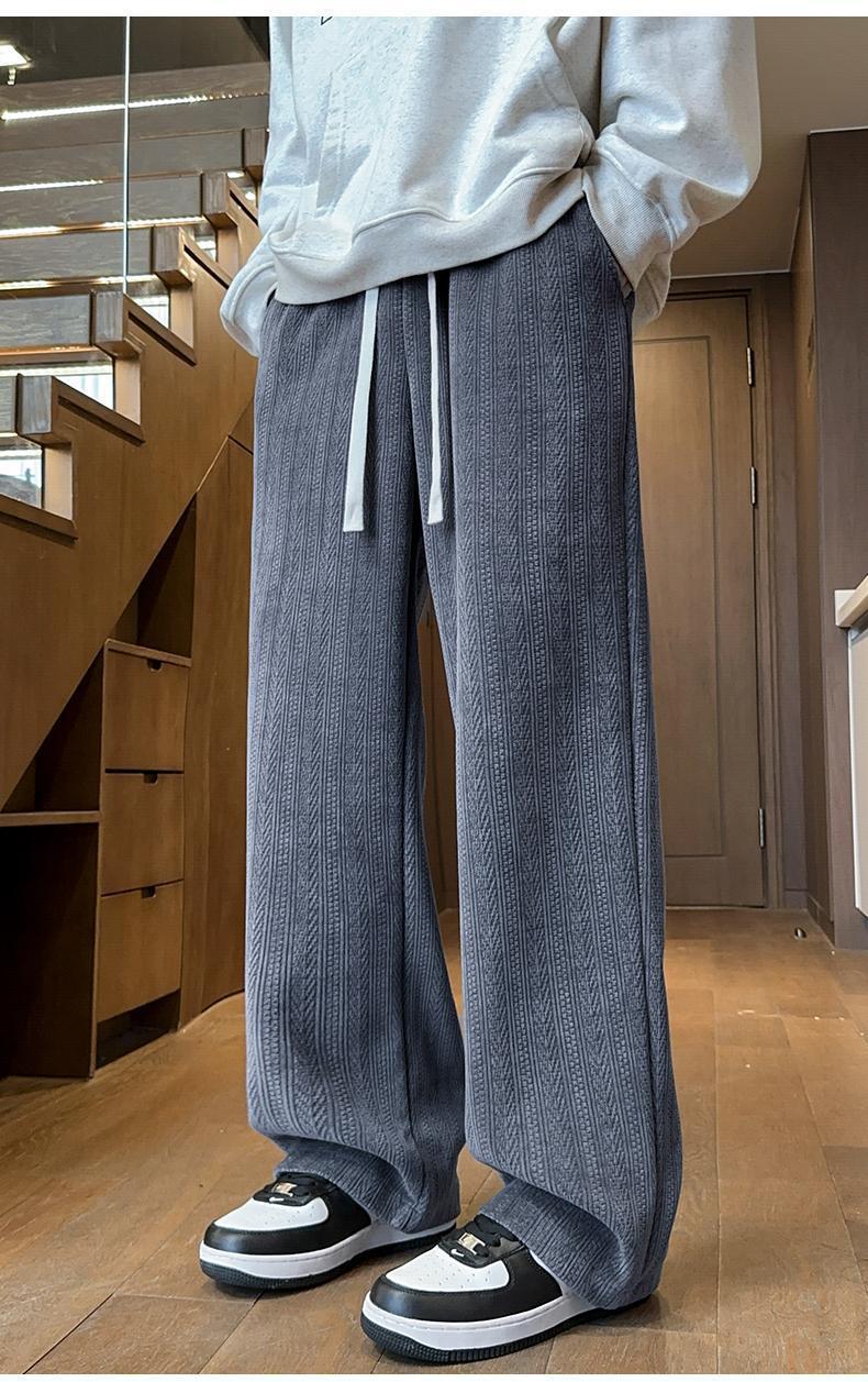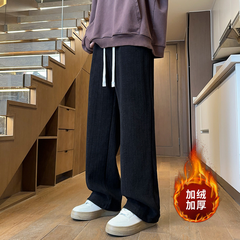 새로운 남성 캐주얼 트렌디 벨벳 두꺼운 따뜻한 캐주얼 바지 남성 가을, 겨울 느슨한 스트레이트 와이드 레그 바지스토어 가기