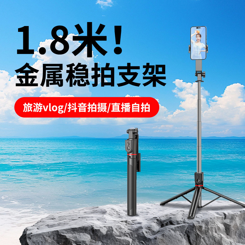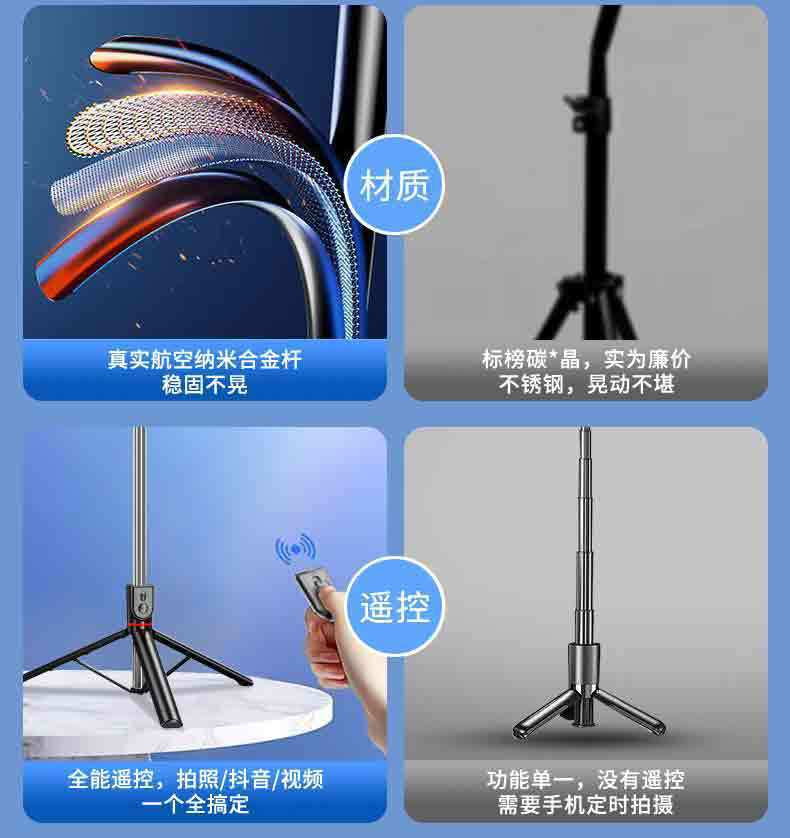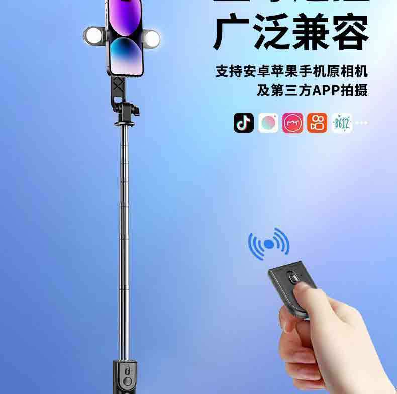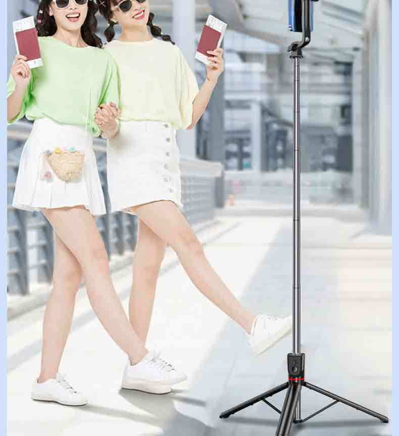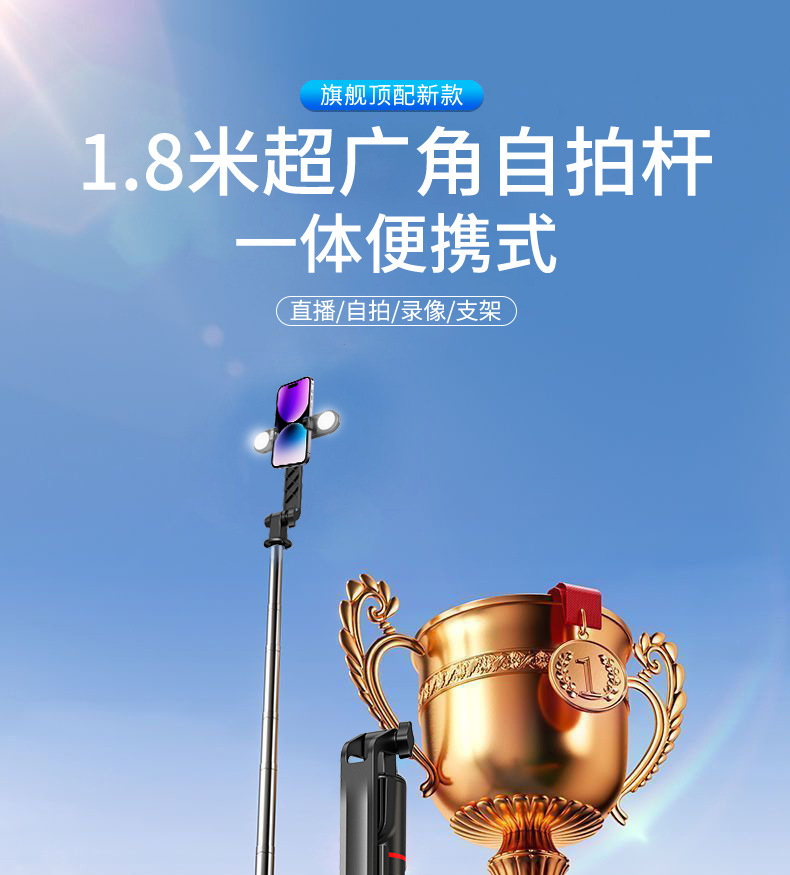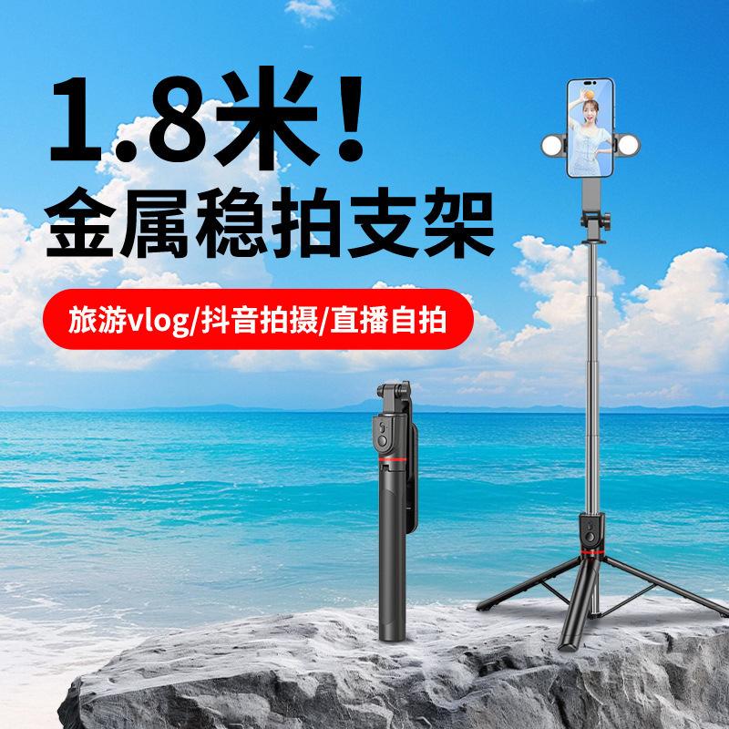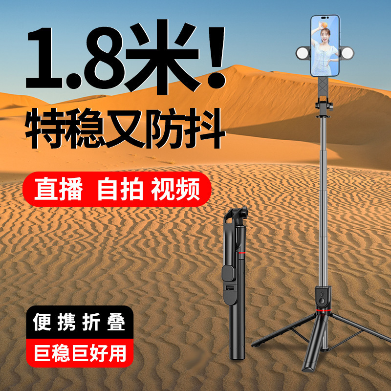 보조 조명 사진을 갖춘 국경 간 H58 휴대 전화 셀카 스틱 1.8m 블루투스 원격 제어 휴대용 라이브 방송 삼각대 스탠드