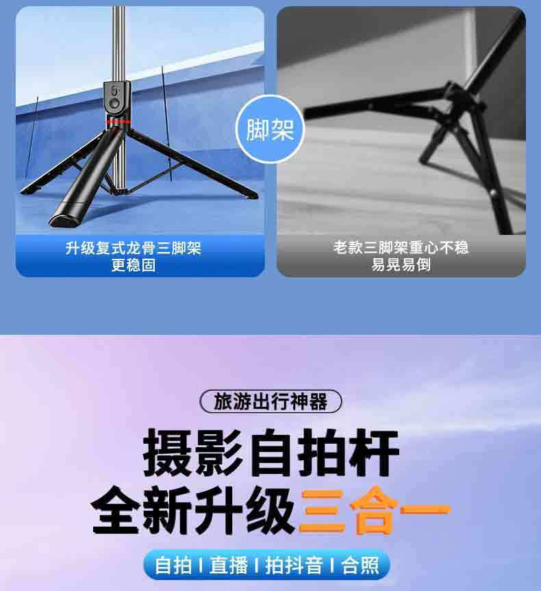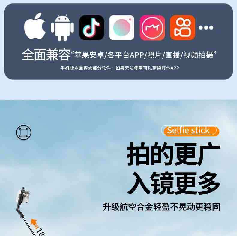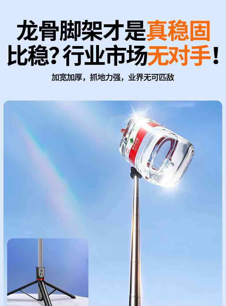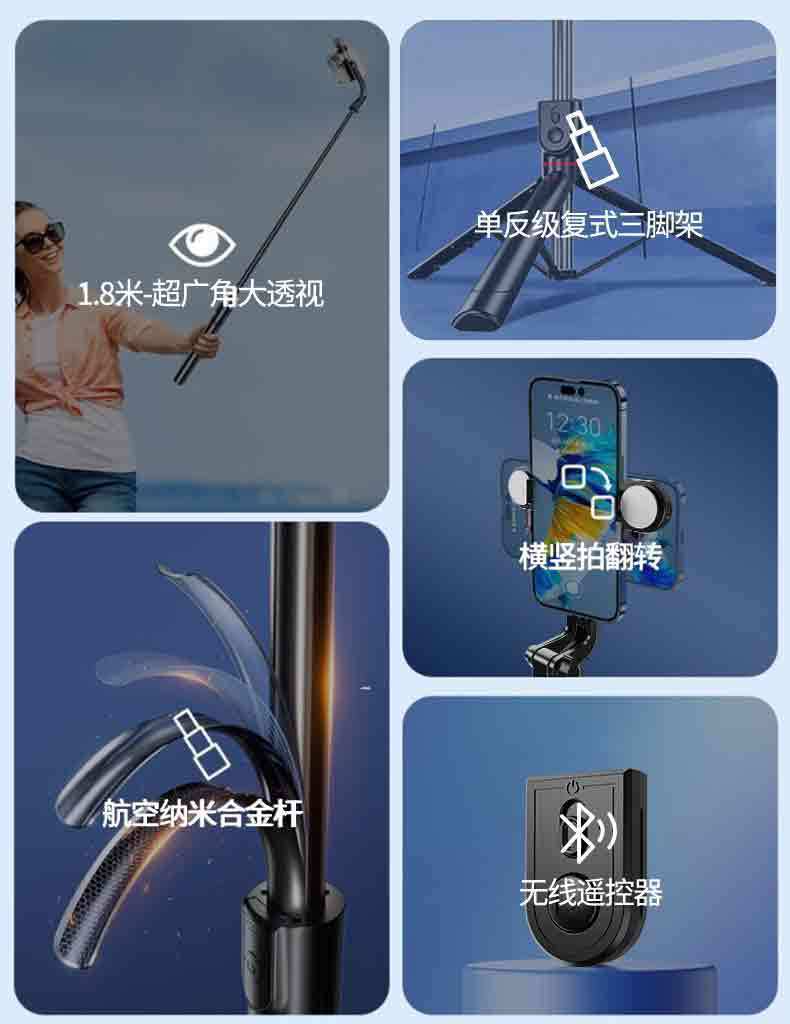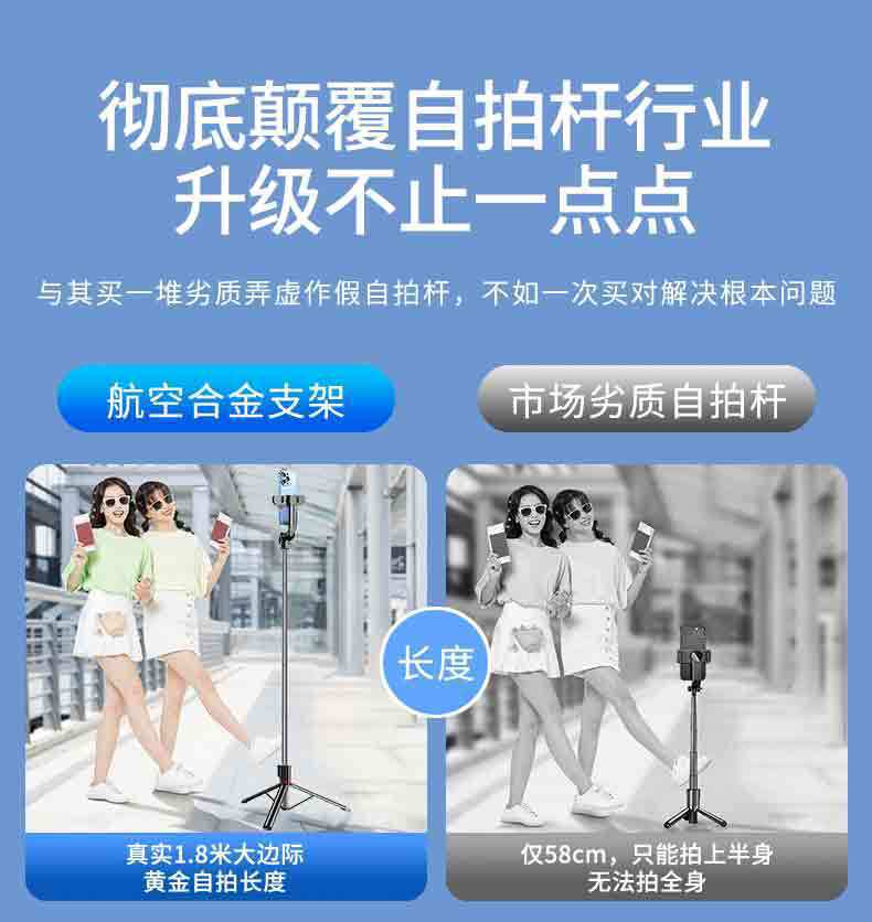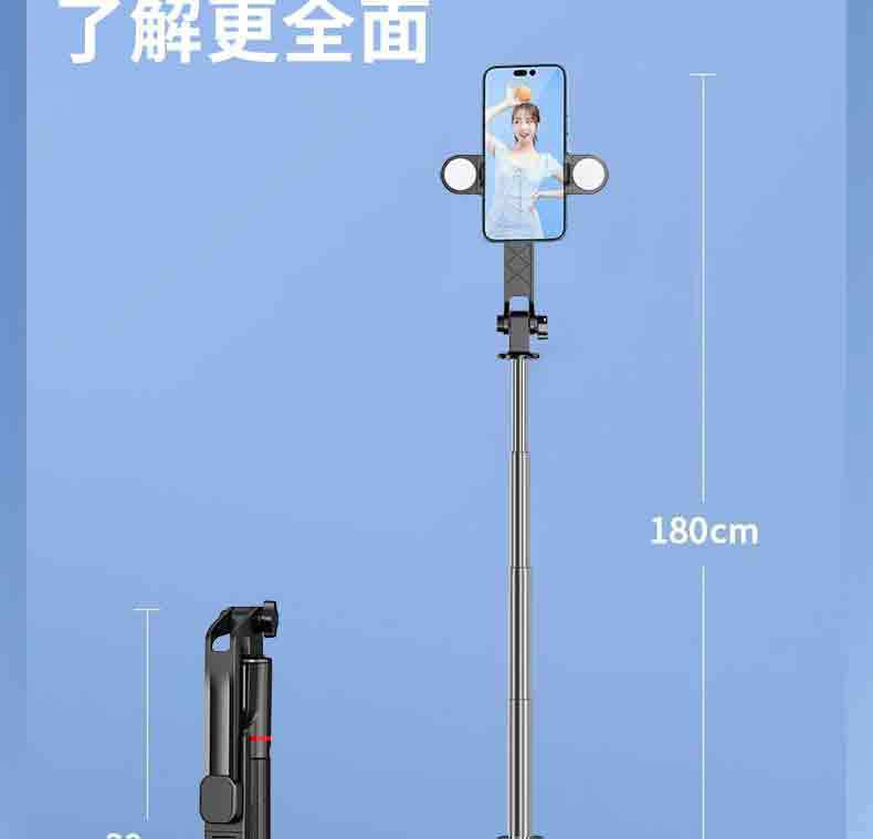 보조 조명 사진을 갖춘 국경 간 H58 휴대 전화 셀카 스틱 1.8m 블루투스 원격 제어 휴대용 라이브 방송 삼각대 스탠드