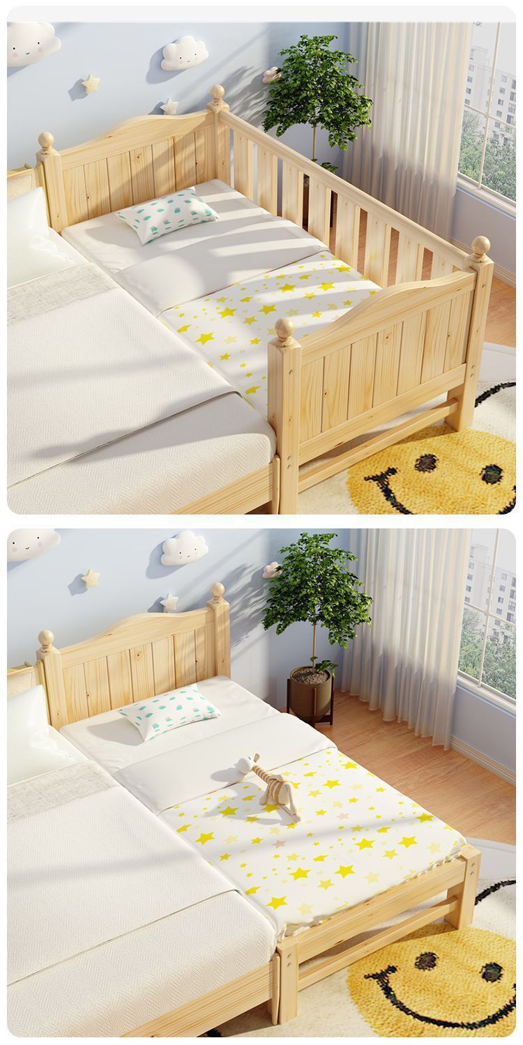 단단한 나무 아기 접합 침대와 더 넓은 어린이 가드 레일 아기 싱글 소년 유아용 침대 소녀 침대 옆 큰 침대스토어 가기