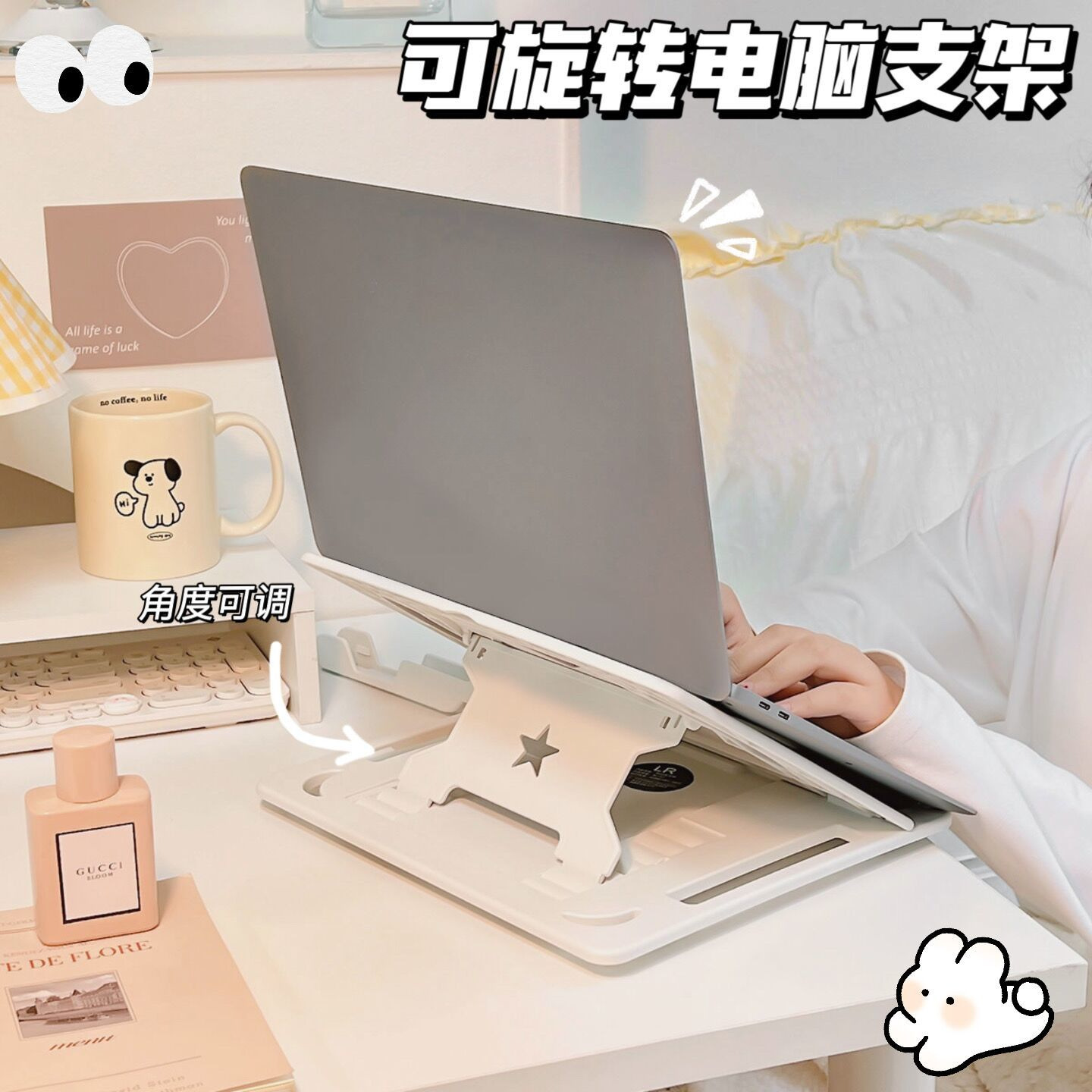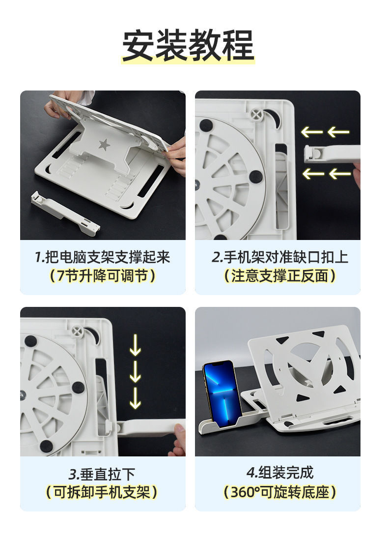 노트북 스탠드 냉각 데스크탑 360 ° 회전 브래킷 높이 조절 가능 접이식 리프팅 휴대용 조절 가능스토어 가기