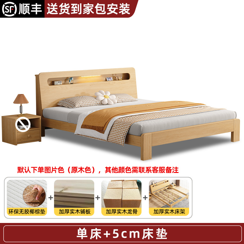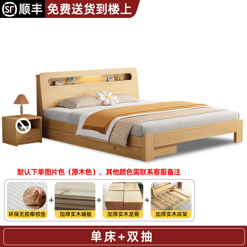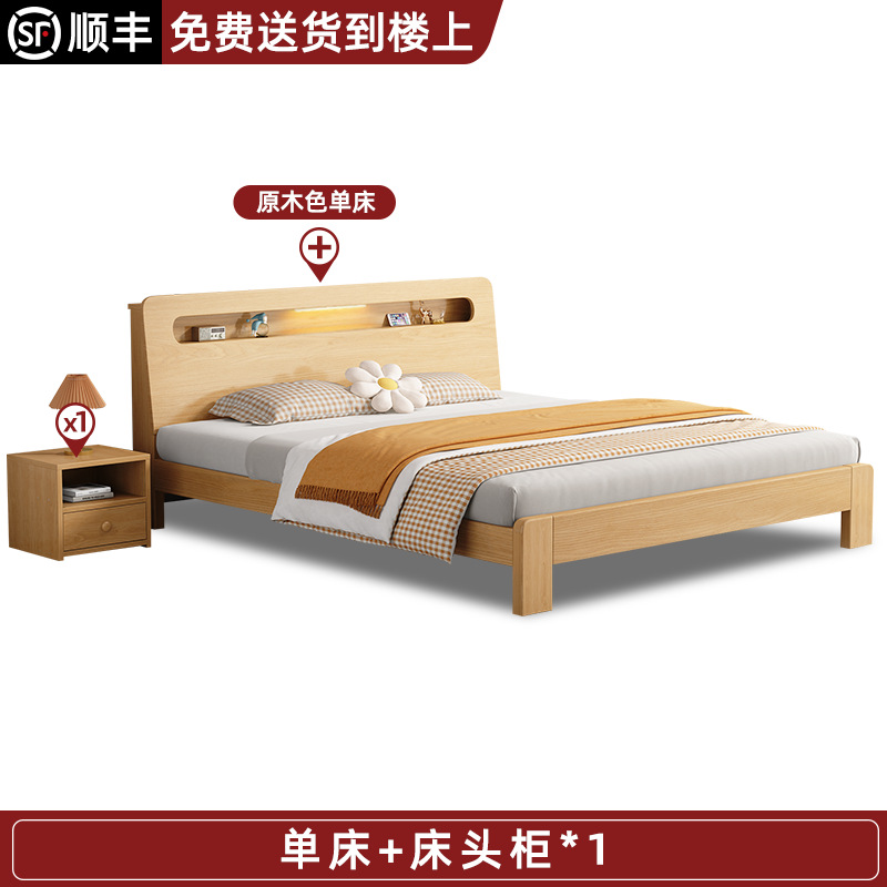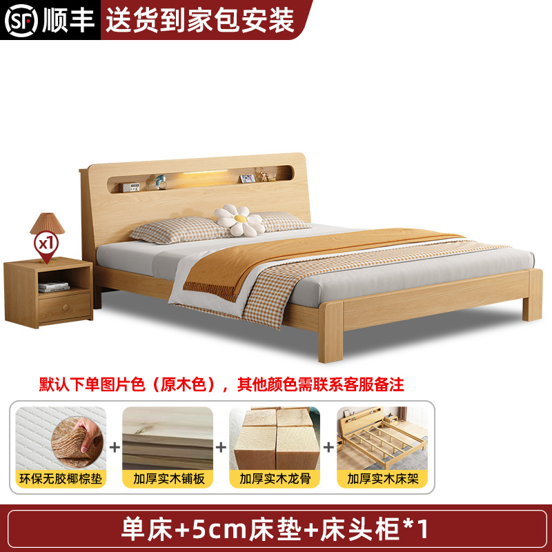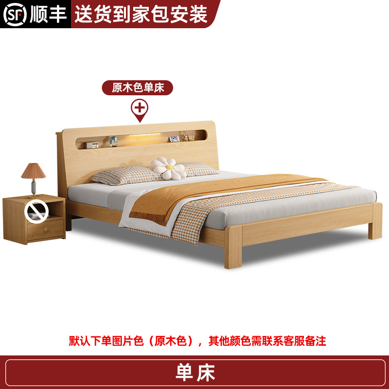 • 원목 컬러 싱글 침대 + 침대 옆 탁자 * 1 [위층 배송] 두껍고 환경 친화적