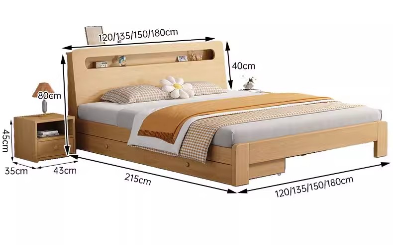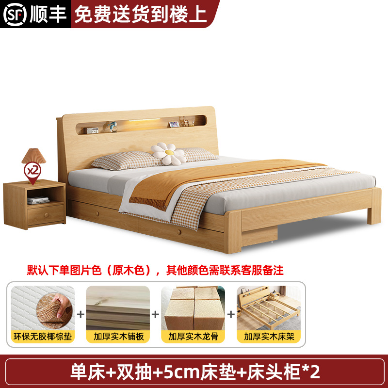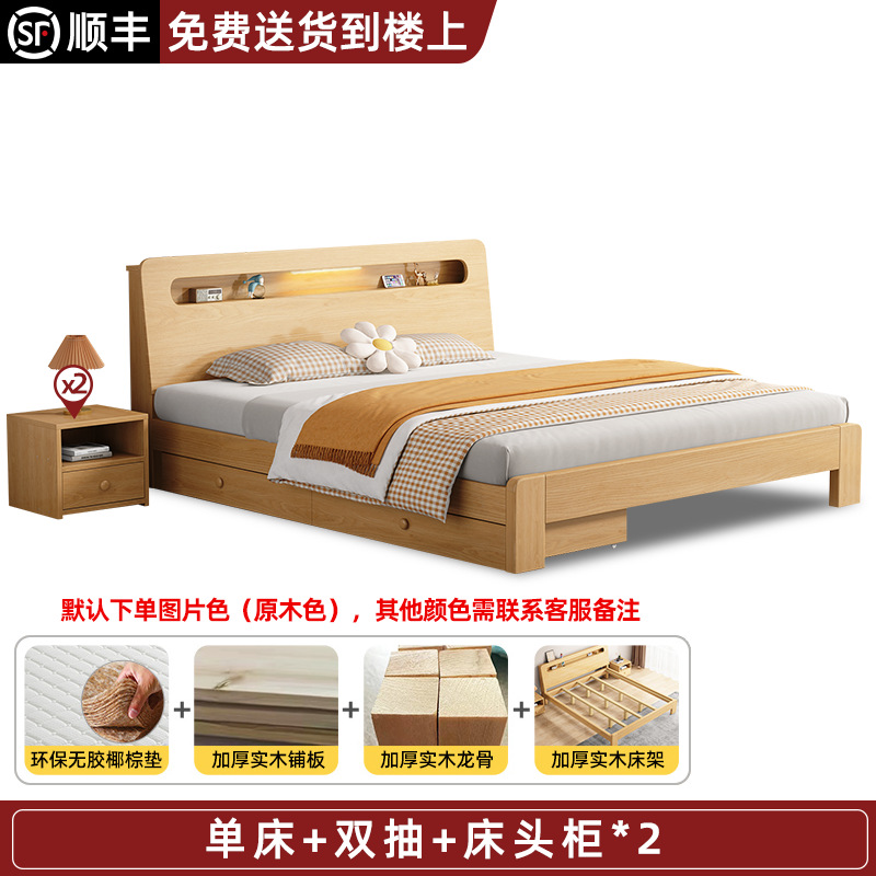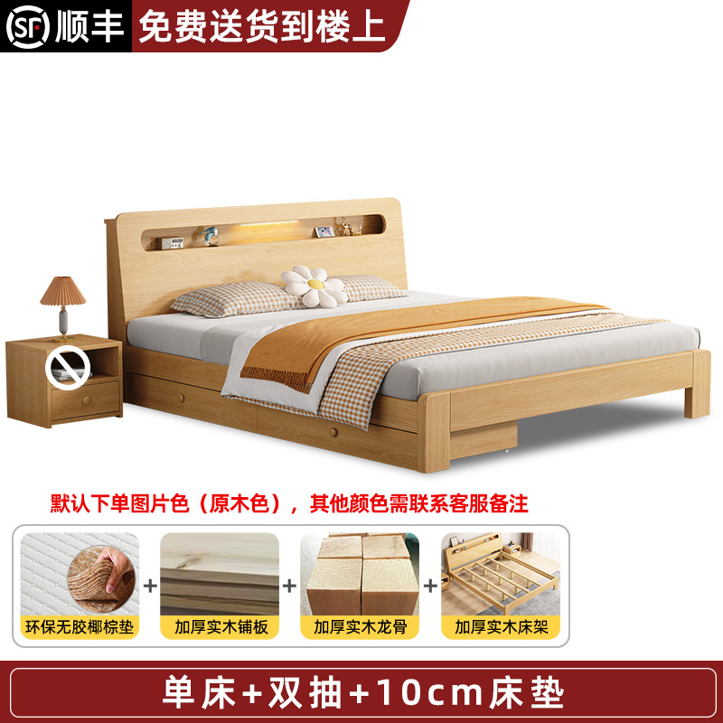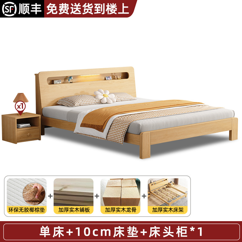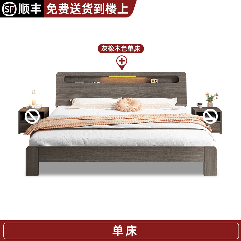 • 원목 컬러 싱글 침대 + 침대 옆 탁자 * 1 [위층 배송] 두껍고 환경 친화적