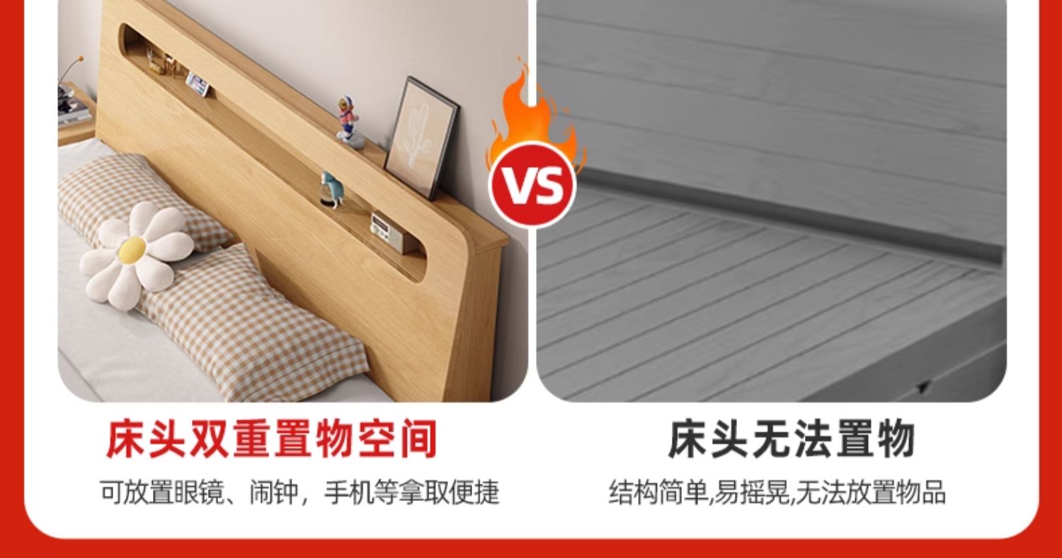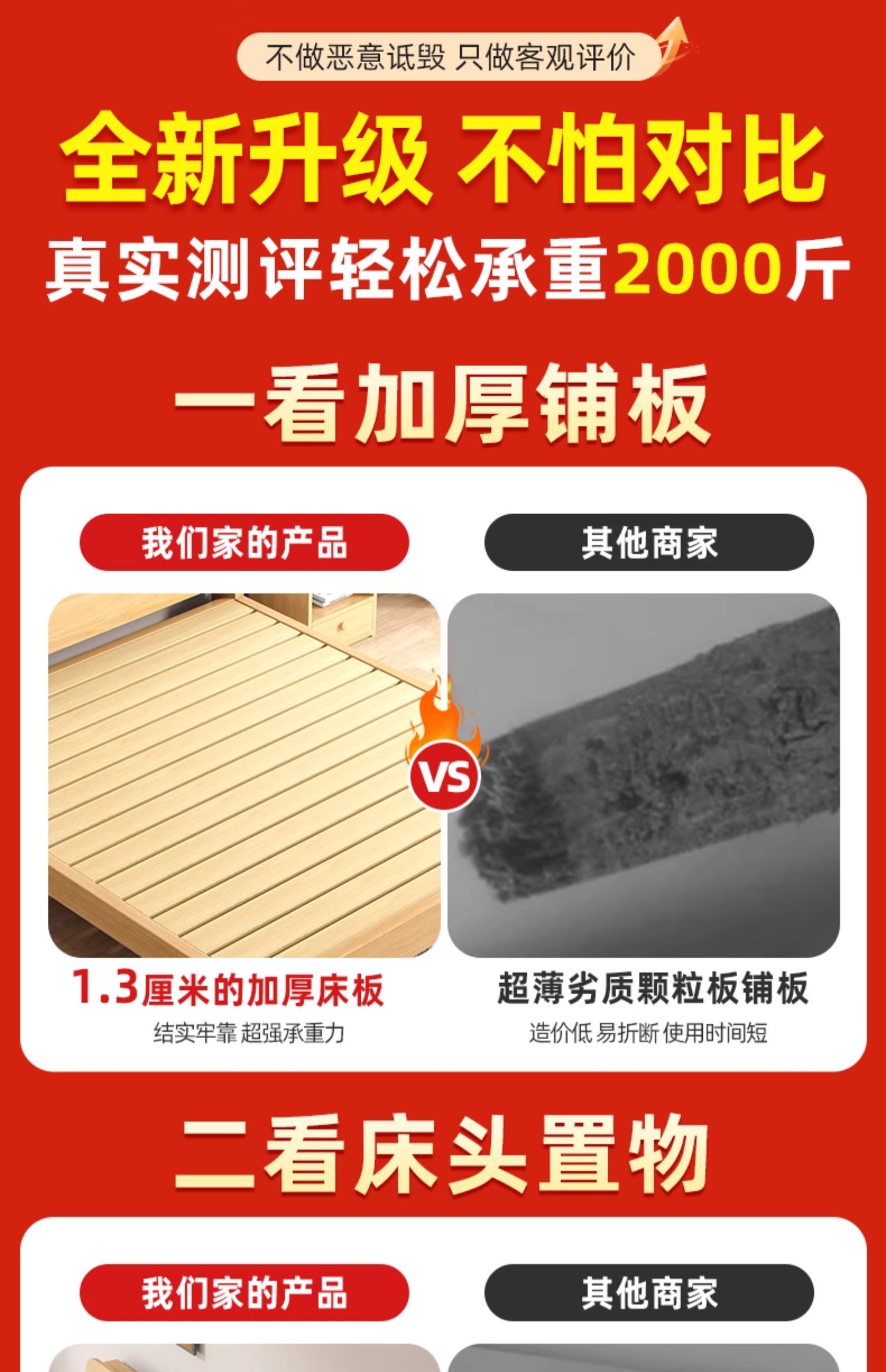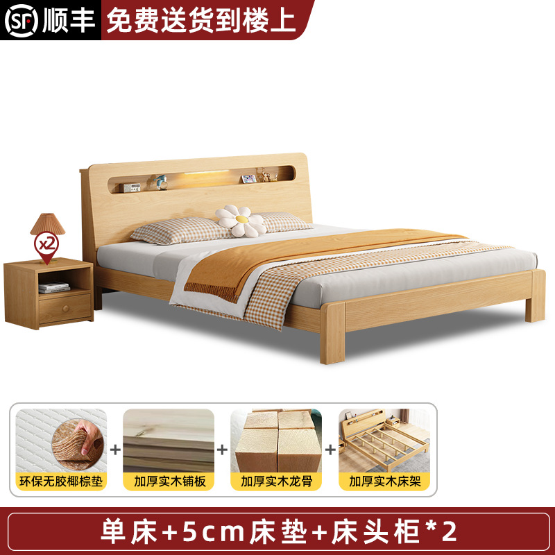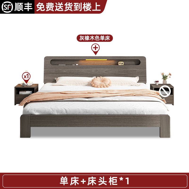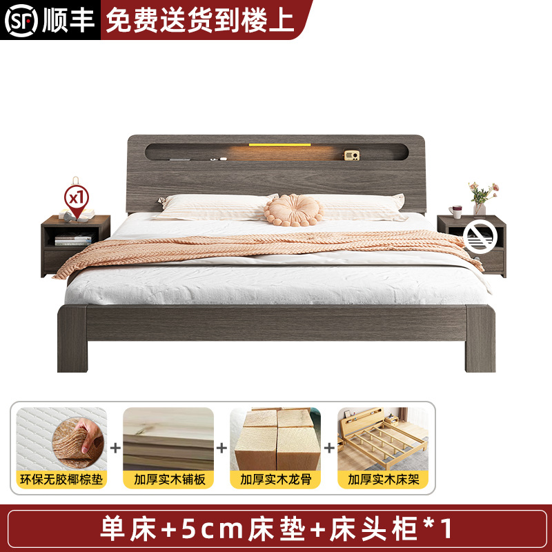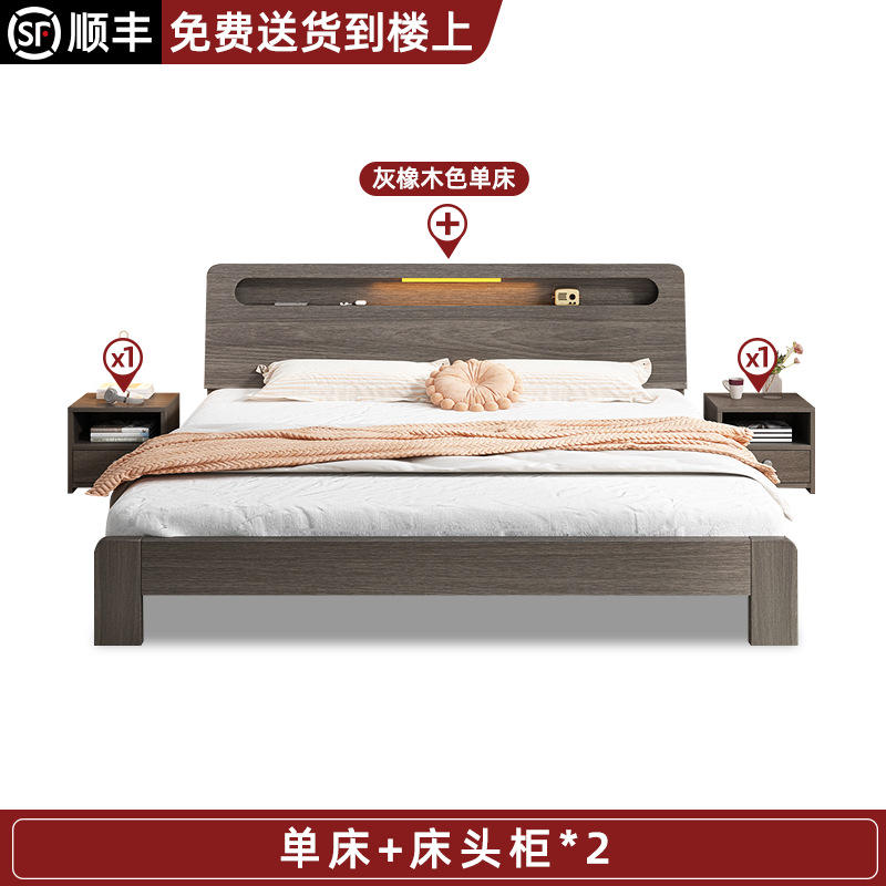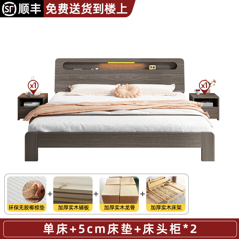 원목 침대 심플 모던 더블 침대 프레임 1.8m 마스터 침실 임대실 경제형 1.6m 싱글 침대 2개스토어 가기