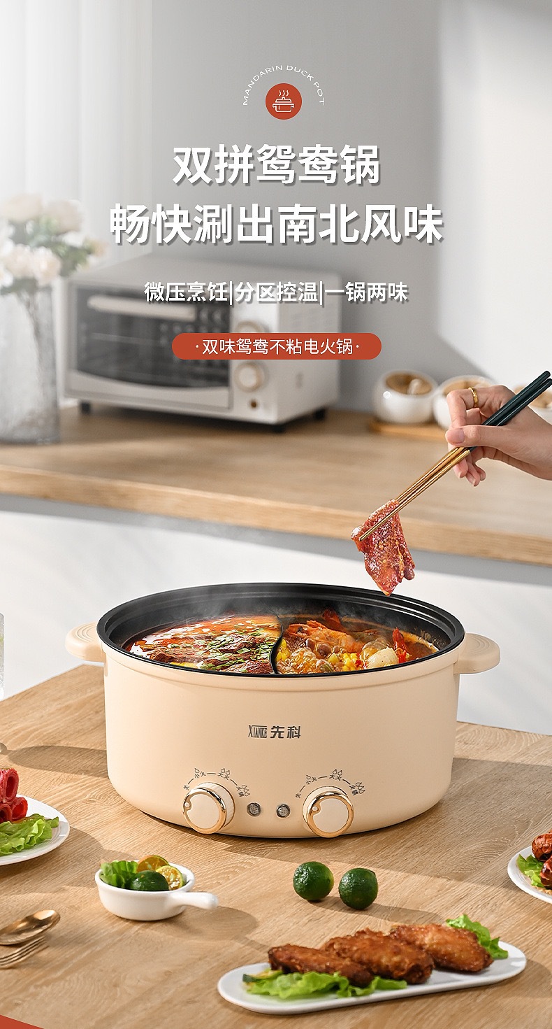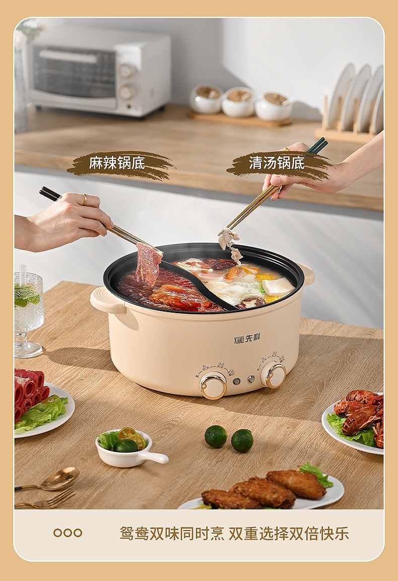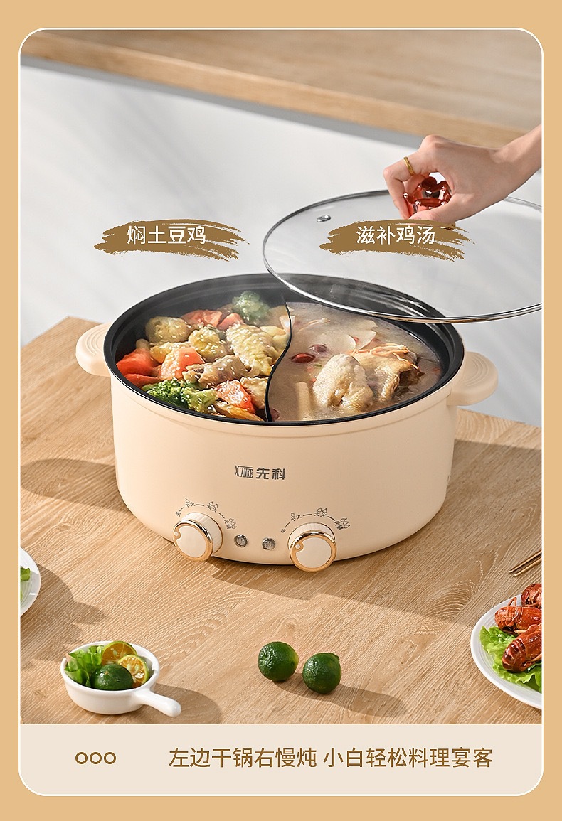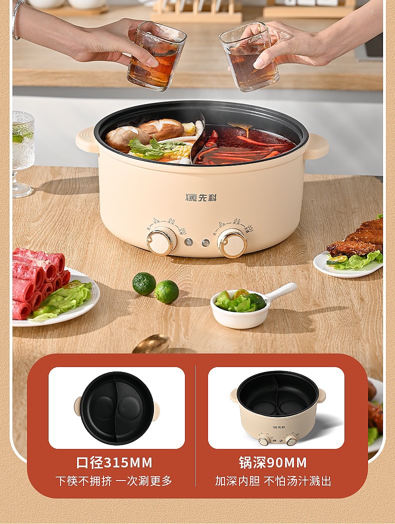 Xianke 다기능 올인원 전기 요리 냄비 전기 냄비 분리 제어 속도 끓는 오리 냄비 가정용 전기 냄비스토어 가기
