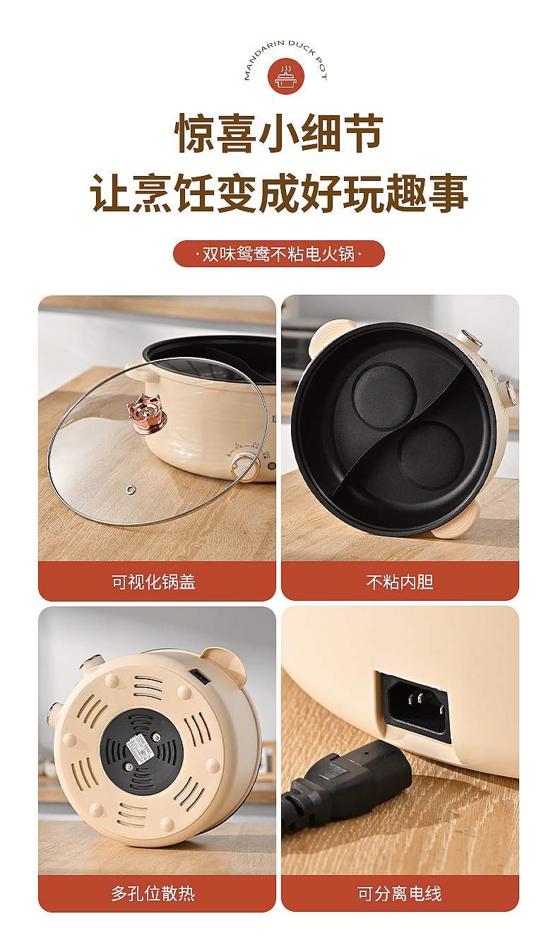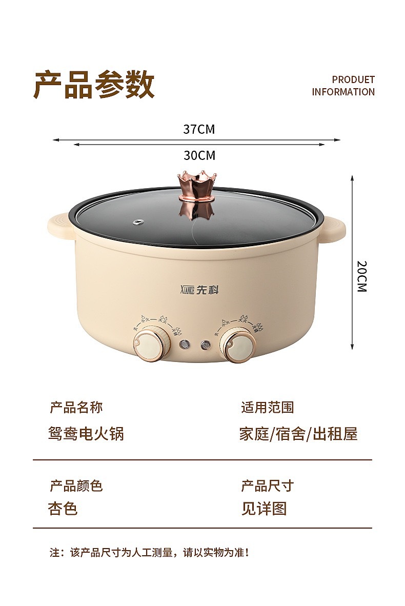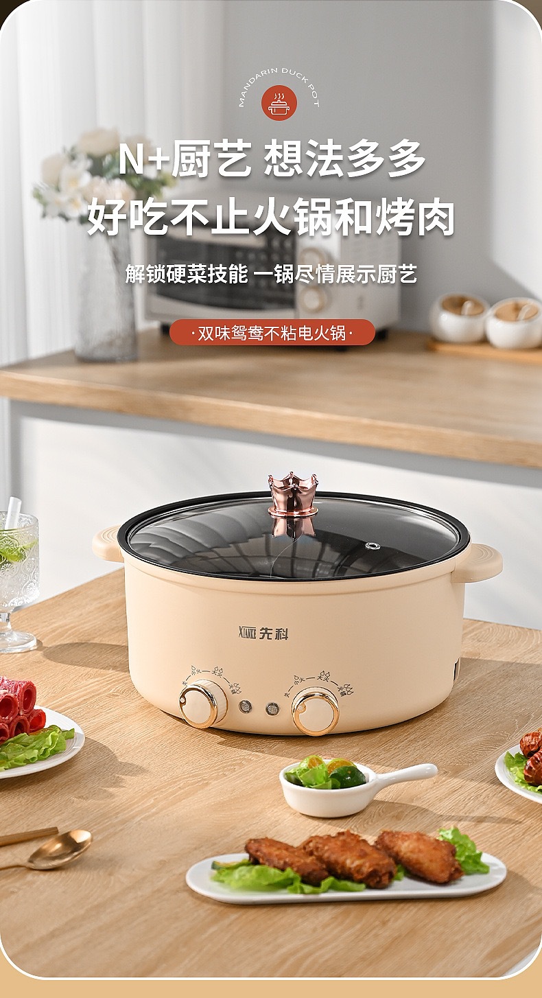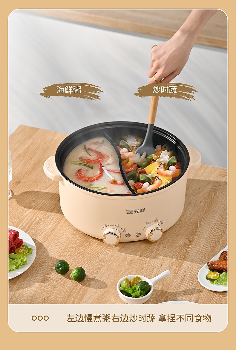 Xianke 다기능 올인원 전기 요리 냄비 전기 냄비 분리 제어 속도 끓는 오리 냄비 가정용 전기 냄비스토어 가기