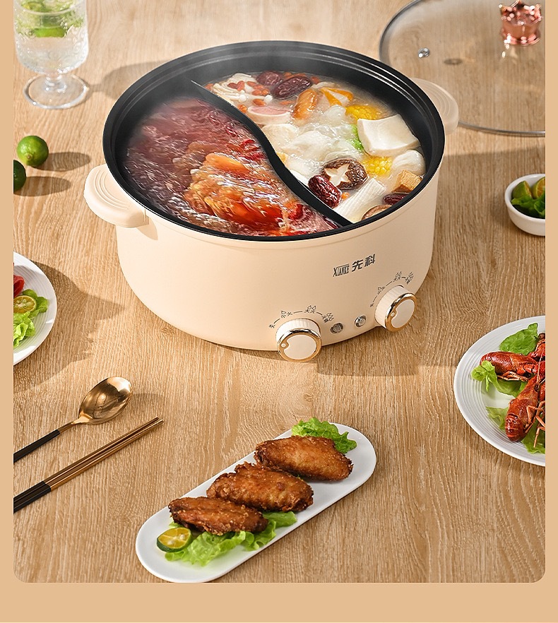 Xianke 다기능 올인원 전기 요리 냄비 전기 냄비 분리 제어 속도 끓는 오리 냄비 가정용 전기 냄비