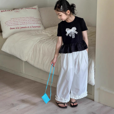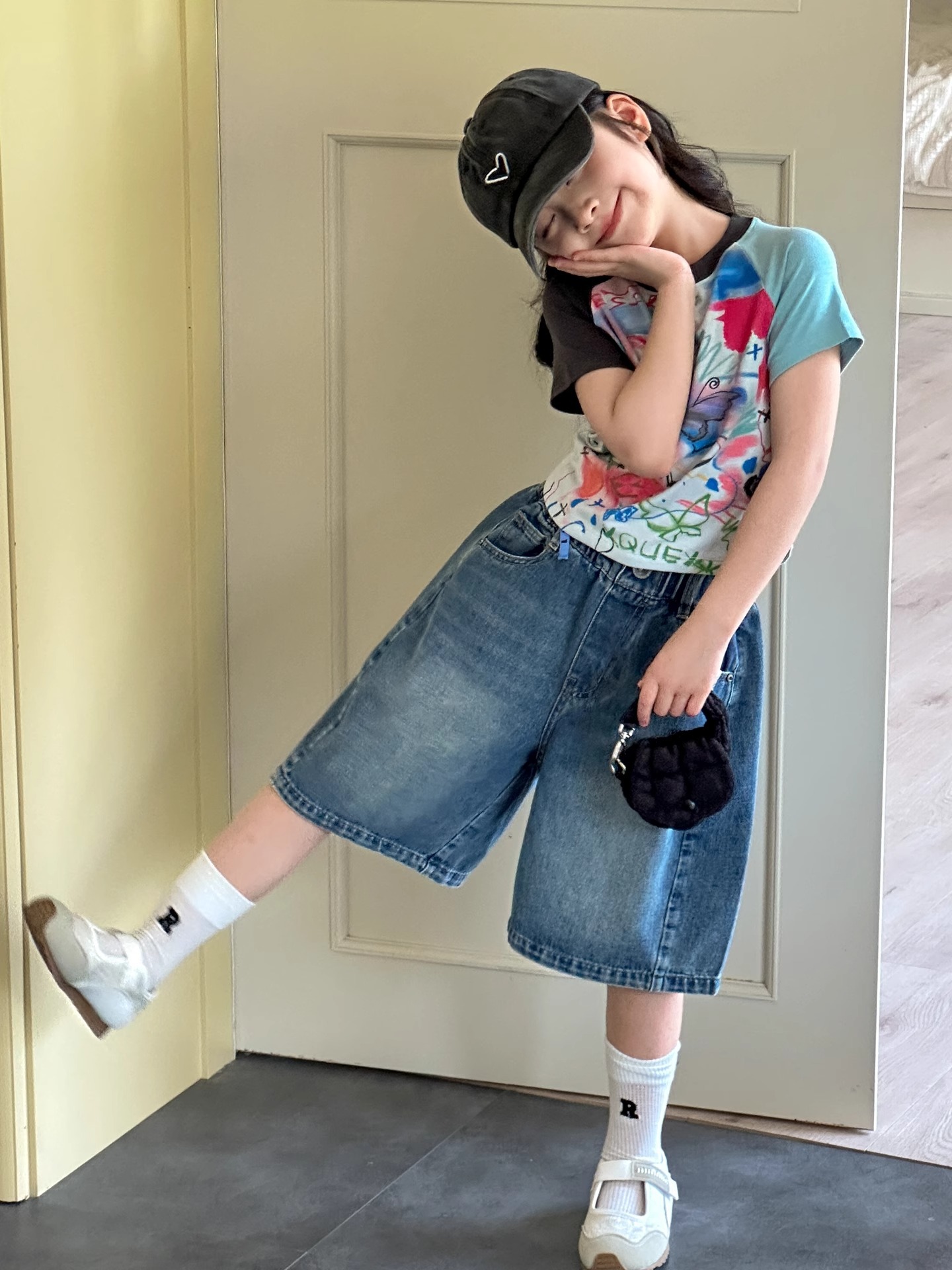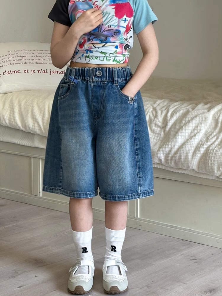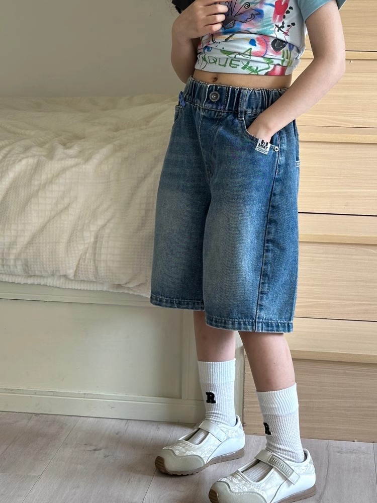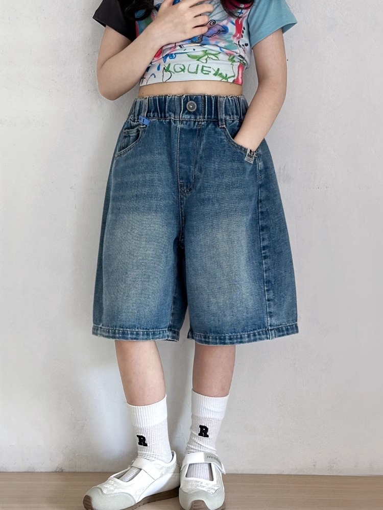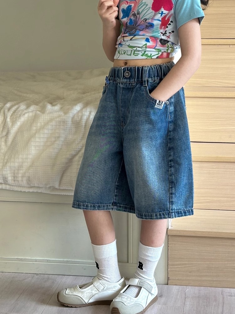 샤오홍위 여아 데님 반바지 여름 2026 신상 아동용 부모-자녀 와이드 팬츠 얇은 루즈핏 중간 길이 바지 아동복스토어 가기