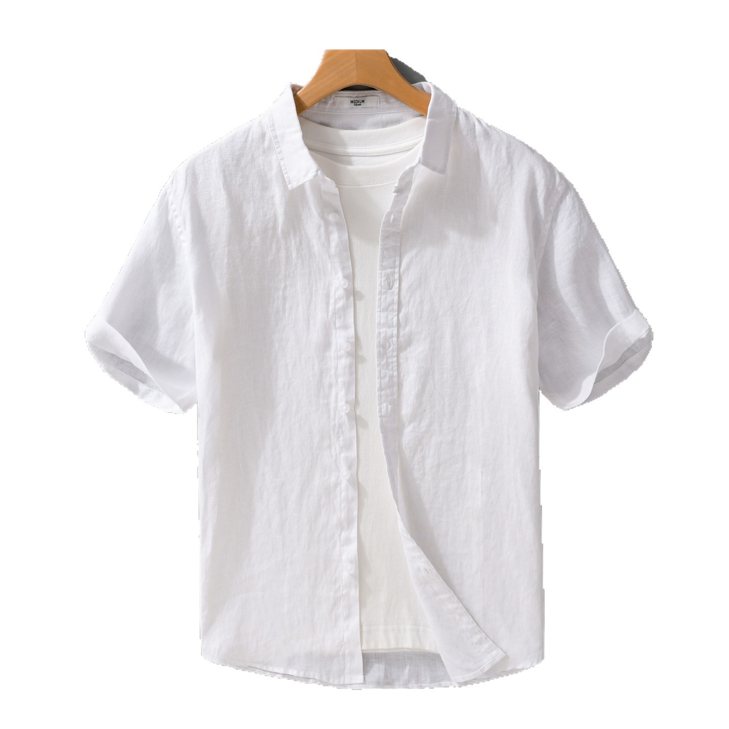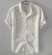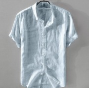 린넨 남성복 심플하고 활용도가 높은 캐주얼 린넨 반팔 셔츠 대량 유럽 사이즈 남성 반팔 셔츠