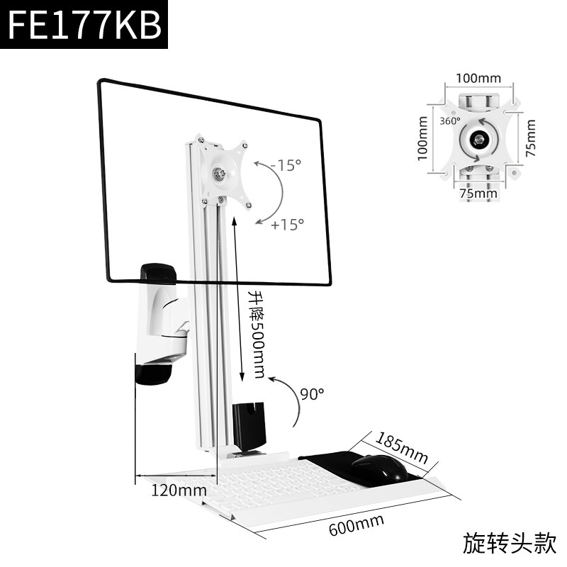 벽걸이형 모니터 브래킷 산업용 장비 컴퓨터 일체형 랙 리프팅 및 회전 접이식 키보드 트레이 포함