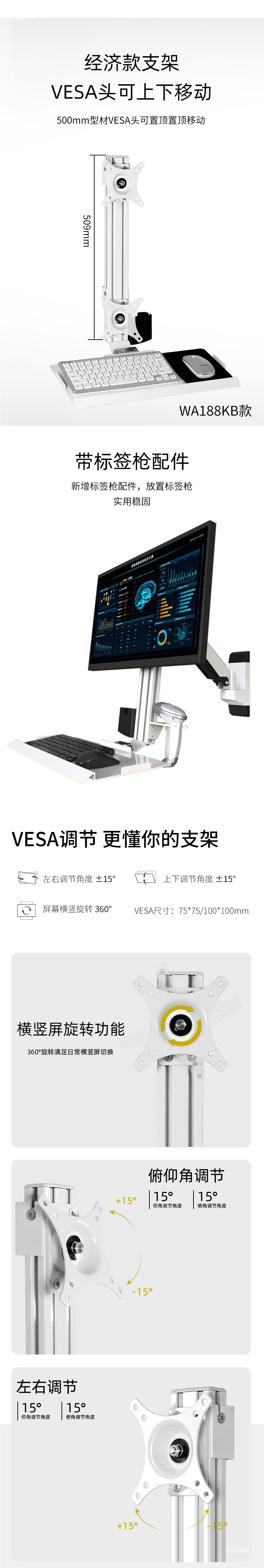 벽걸이형 모니터 브래킷 산업용 장비 컴퓨터 일체형 랙 리프팅 및 회전 접이식 키보드 트레이 포함스토어 가기