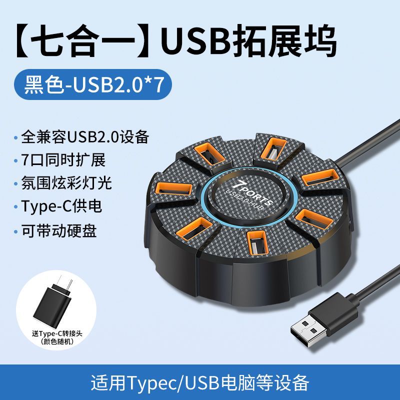 • 검정색 [7-in-1] 원형 + Type-C 어댑터-0.6m