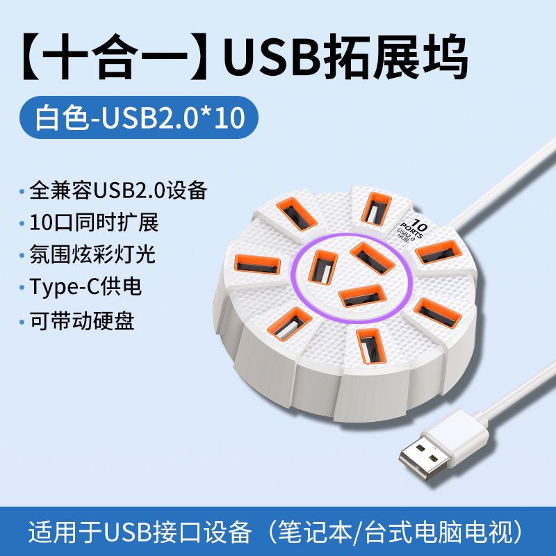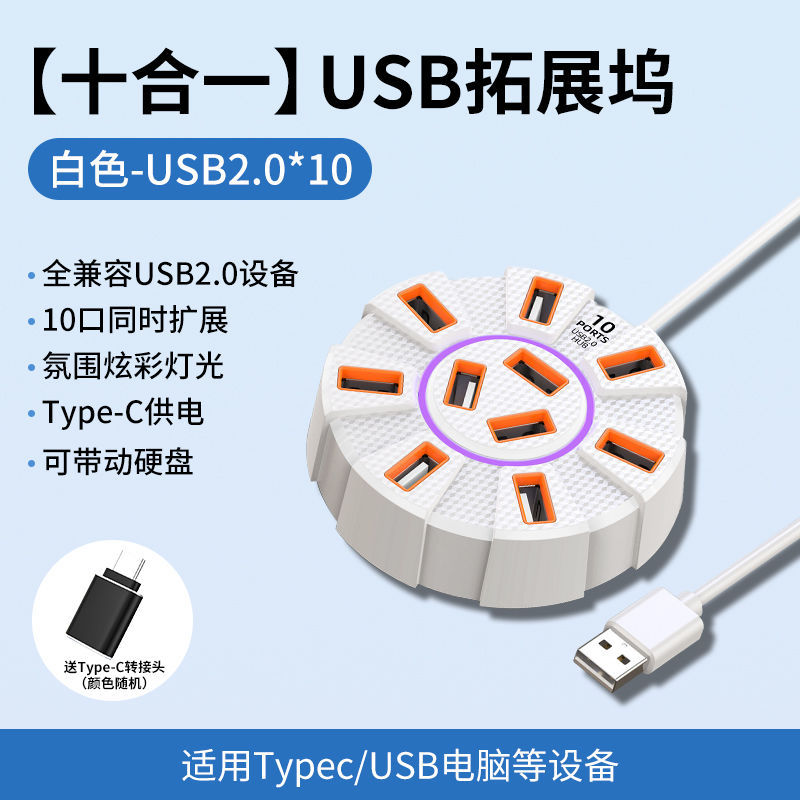 • 흰색 [10-in-1] 원형 + Type-C 어댑터-0.6m