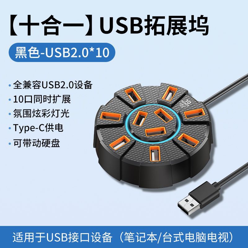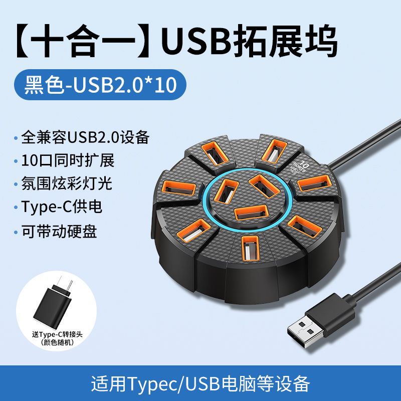 • 검정색 [10-in-1] 원형 + Type-C 어댑터-0.6m