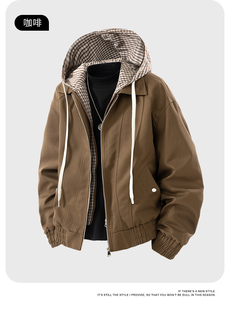 가짜 투피스 작업복 캐주얼 재킷 남성 가을 새로운 방풍 야외 느슨한 유행 브랜드 청소년 후드 재킷스토어 가기