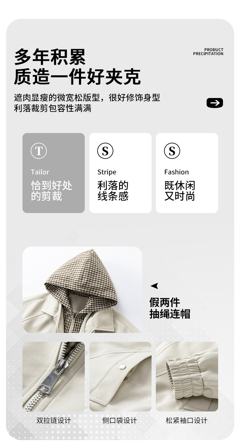 가짜 투피스 작업복 캐주얼 재킷 남성 가을 새로운 방풍 야외 느슨한 유행 브랜드 청소년 후드 재킷