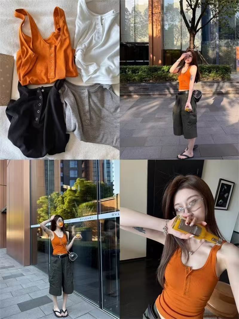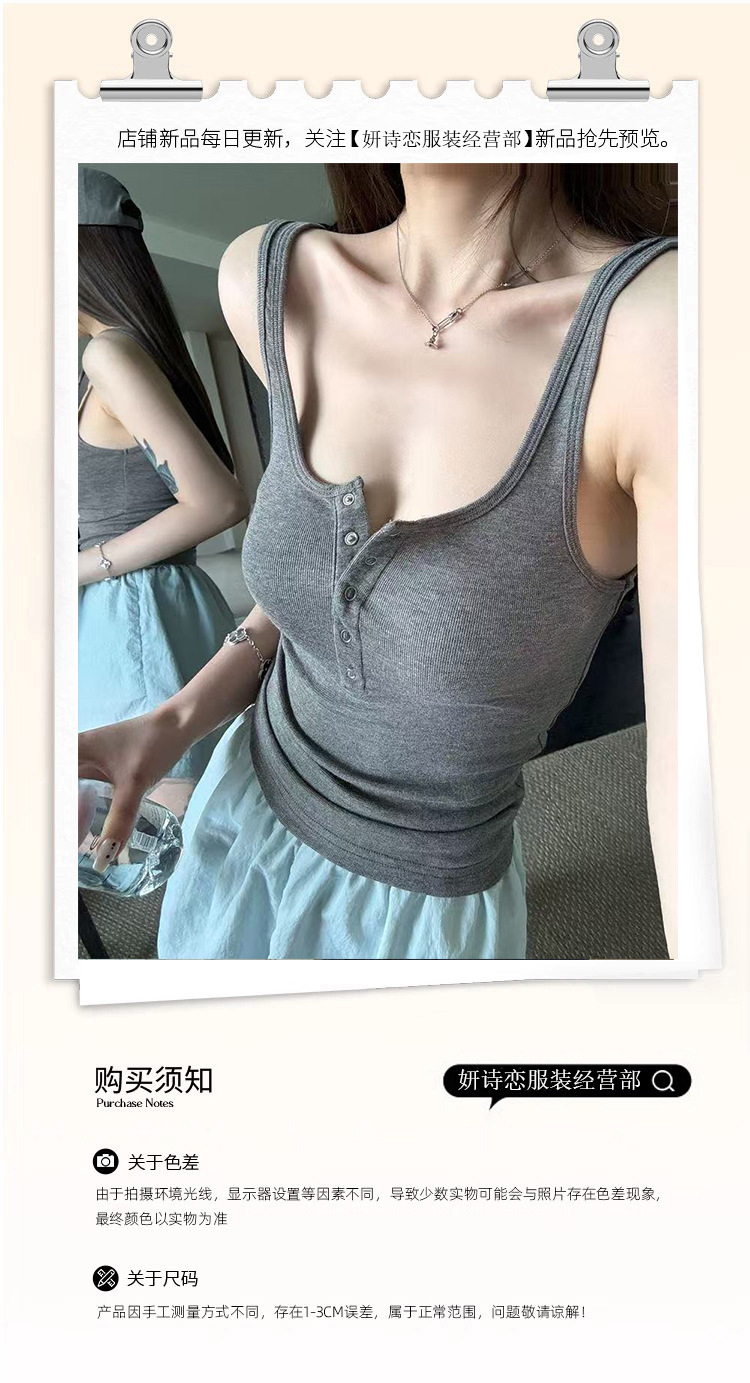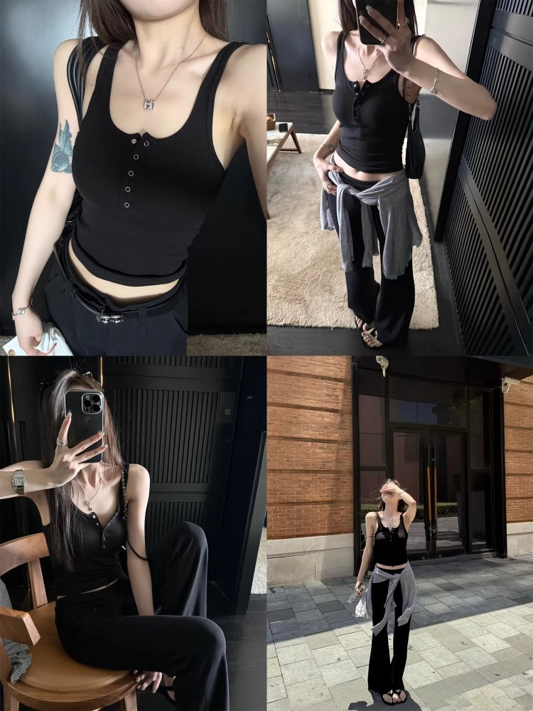 여름 여성을 위한 아메리칸 핫걸 버튼 조끼 서스펜더, 슬림핏 민소매, 아름다운 등, 심플한 아우터, 이너웨어, 허리 조절 가능한 숏탑스토어 가기