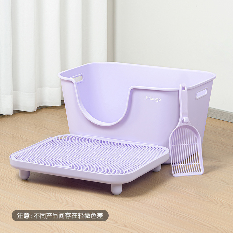 • [Juejue Purple] 개방형 고양이 배변 상자 - 모래 국자 1개 포함