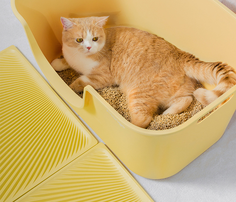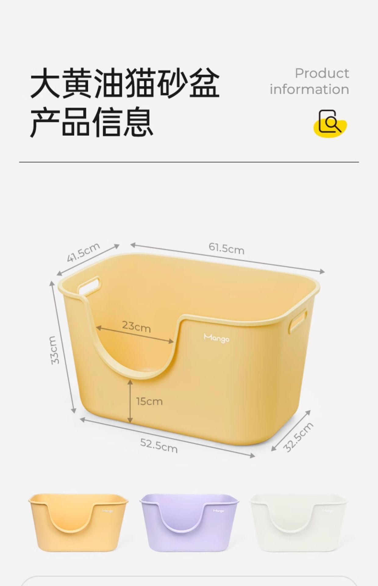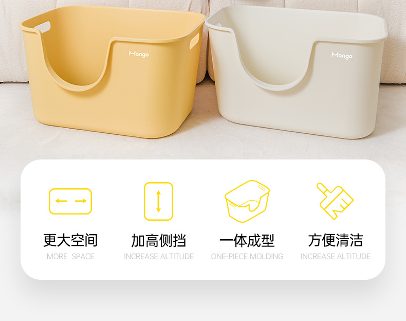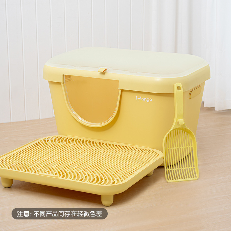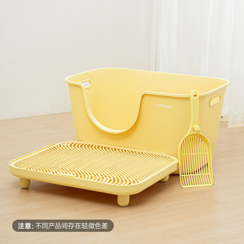 • [Manguo Yellow] 개방형 고양이 배변 상자 - 모래 국자 1개 포함