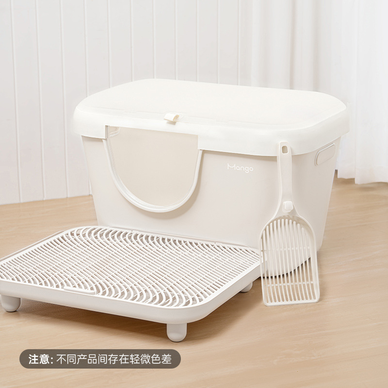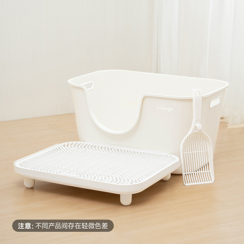 • [크림 화이트] 개방형 고양이 배변 상자 - 모래 국자 1개 포함