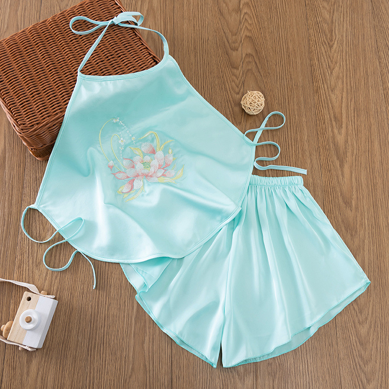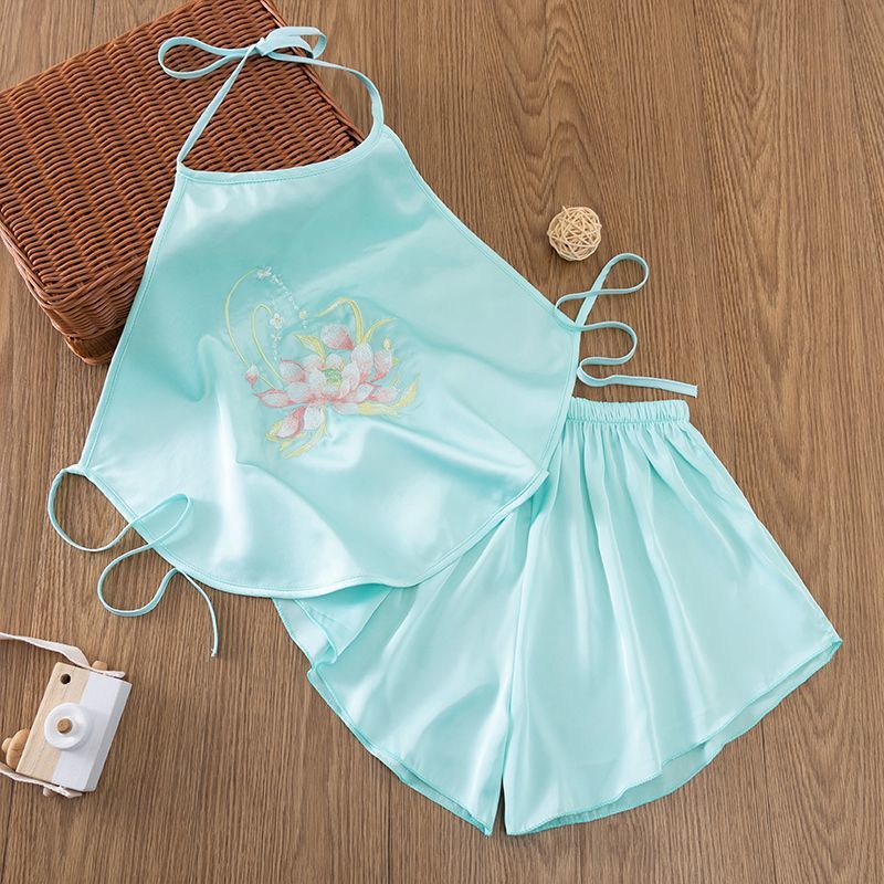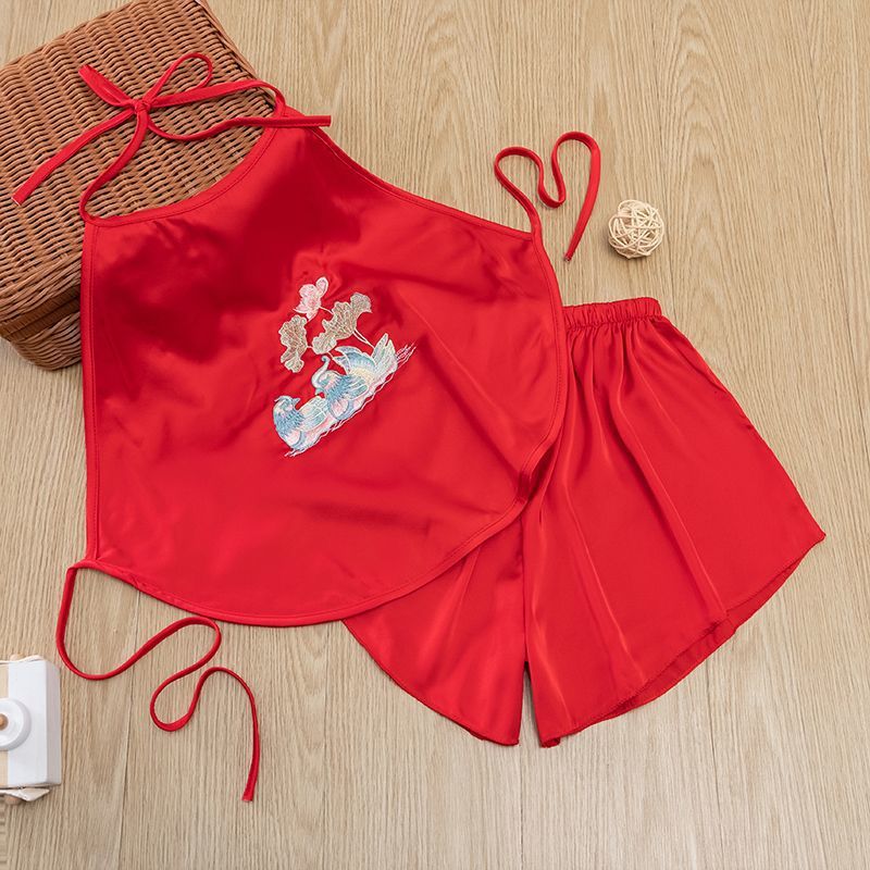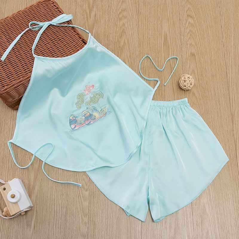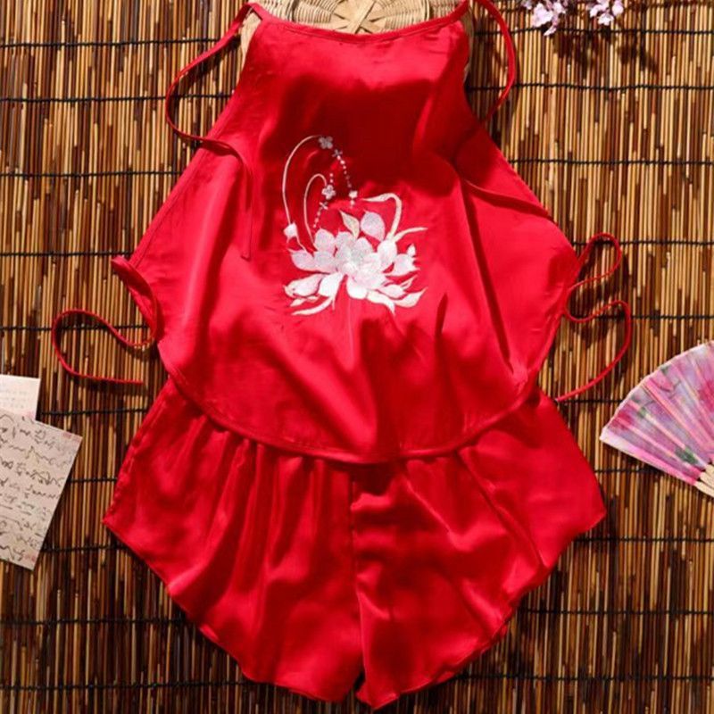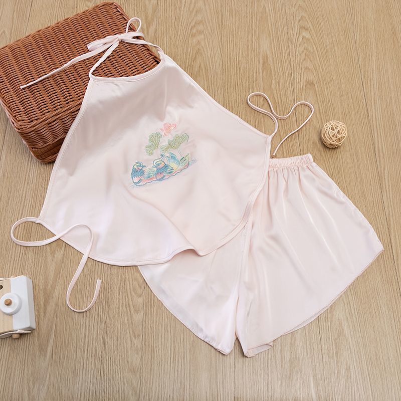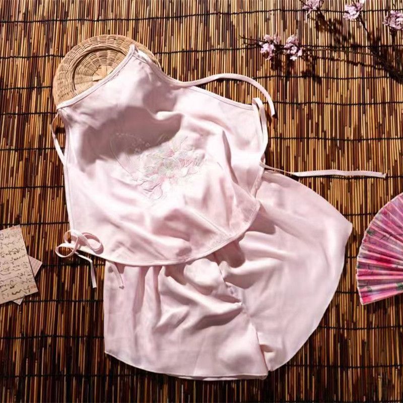 여성용 수자수 자수 배꼽 스카프, 성인용 실크 방지 섹시한 멜빵, 중국 스타일 Hanfu 클래식 속옷 잠옷 세트