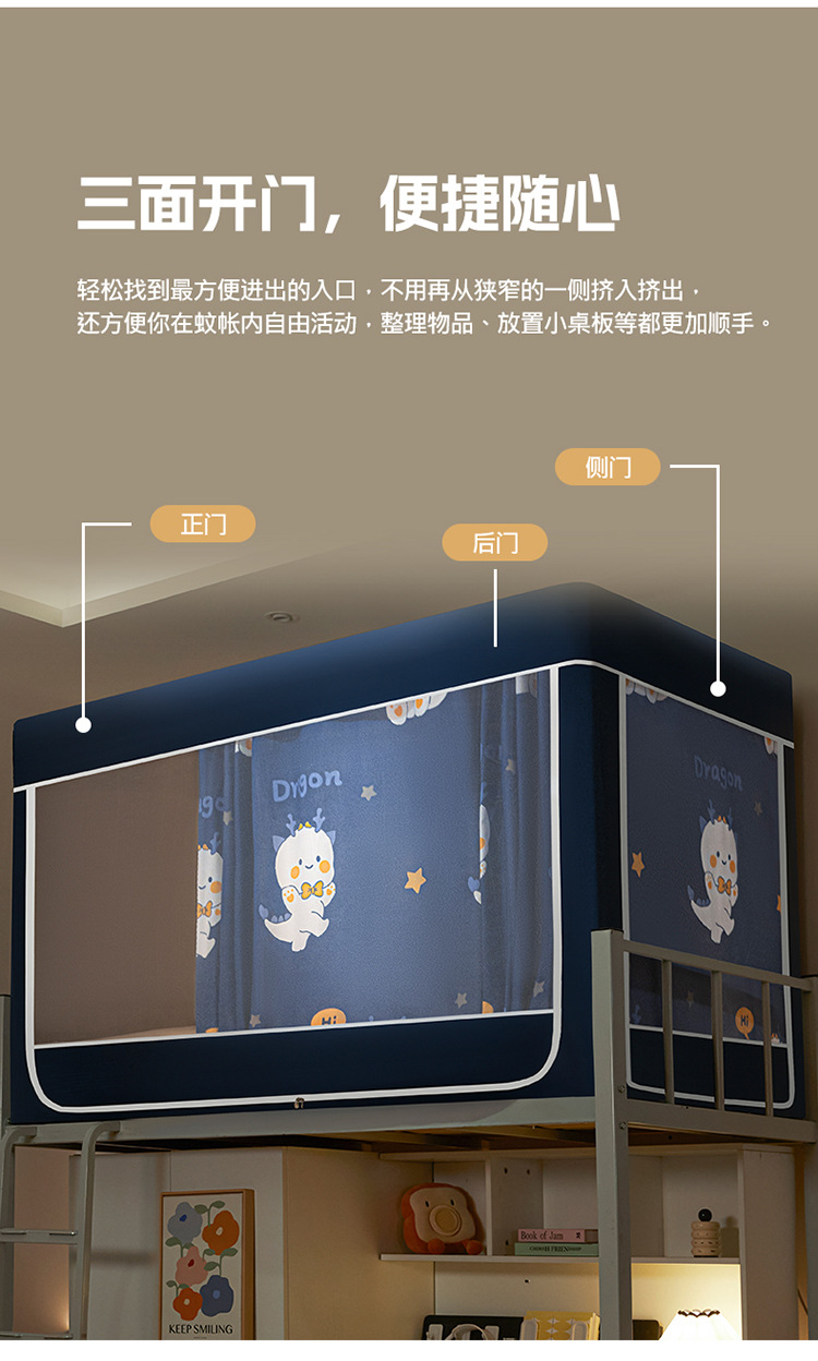 신입생 이층침대 3도어 모기장 두꺼운 강력한 차광 침대 커튼 침실 일체형 모기장(스탠드 포함)스토어 가기