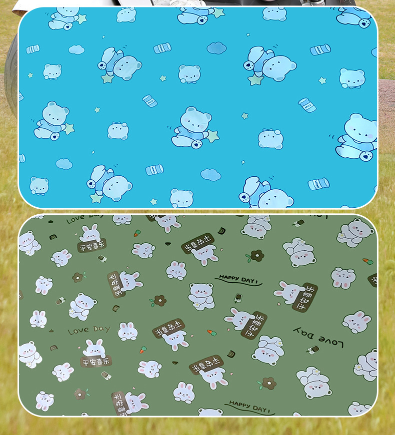 • 퀵 수납형 어닝 [대형 미닫이창 + 확대된 사이드 배플] 이중 프린트 타포린 - 그레이 해피래빗