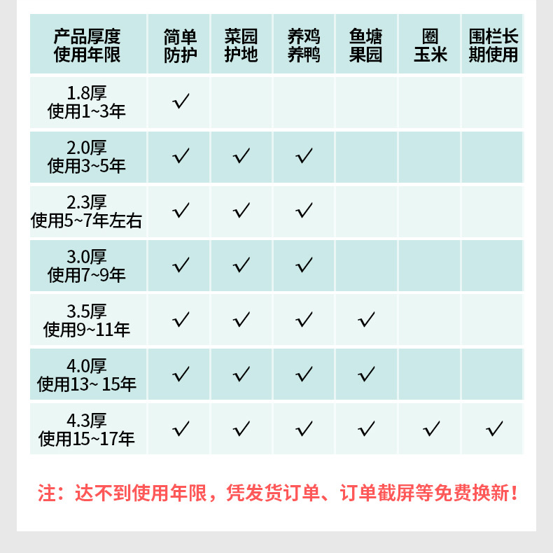 • 높이 1.8m 길이 50m 구멍 4.5 두께 채소밭과 과수원 추천