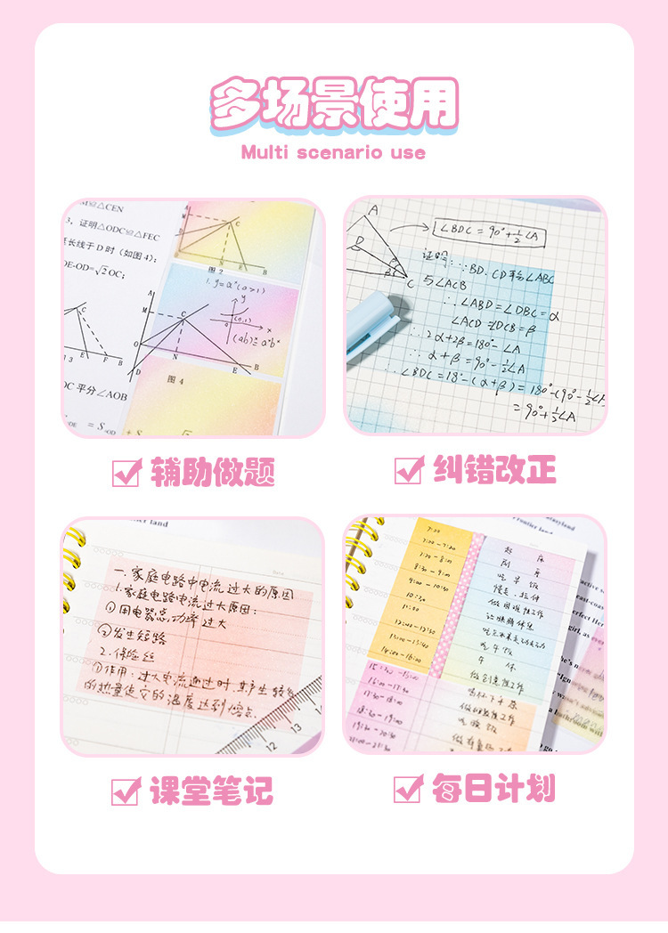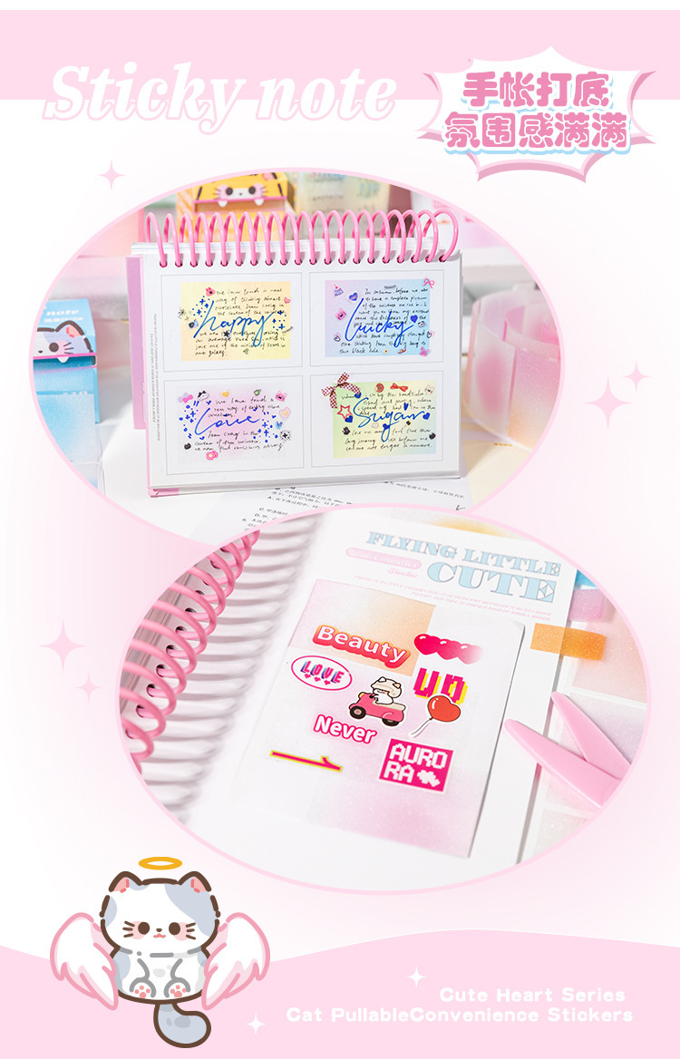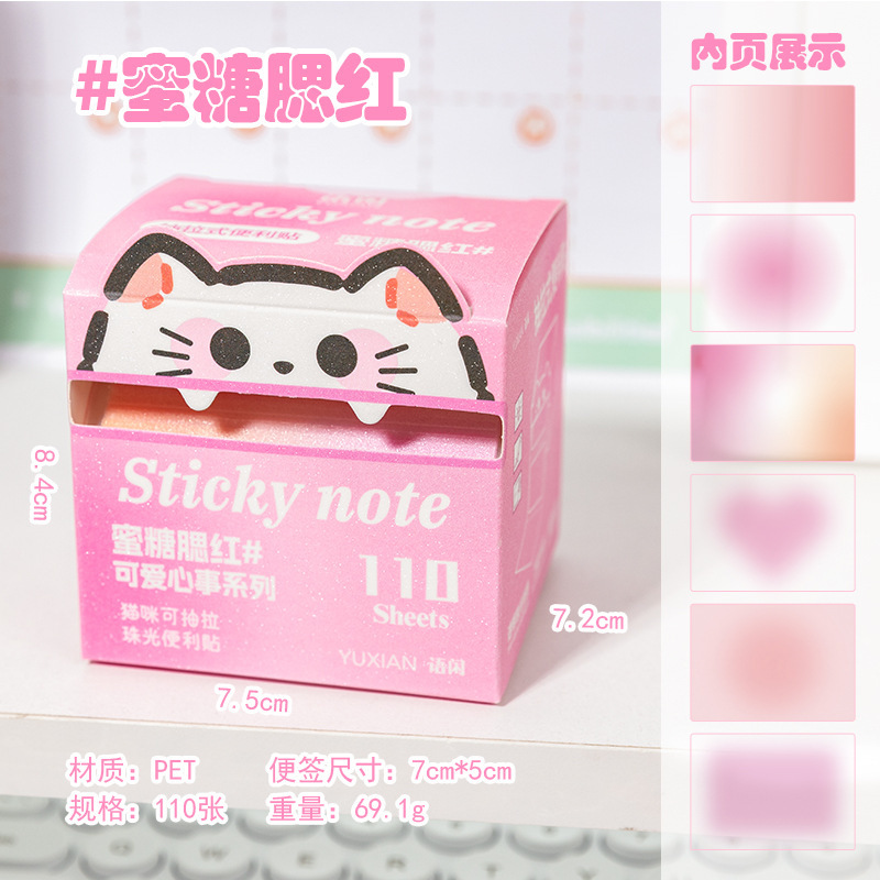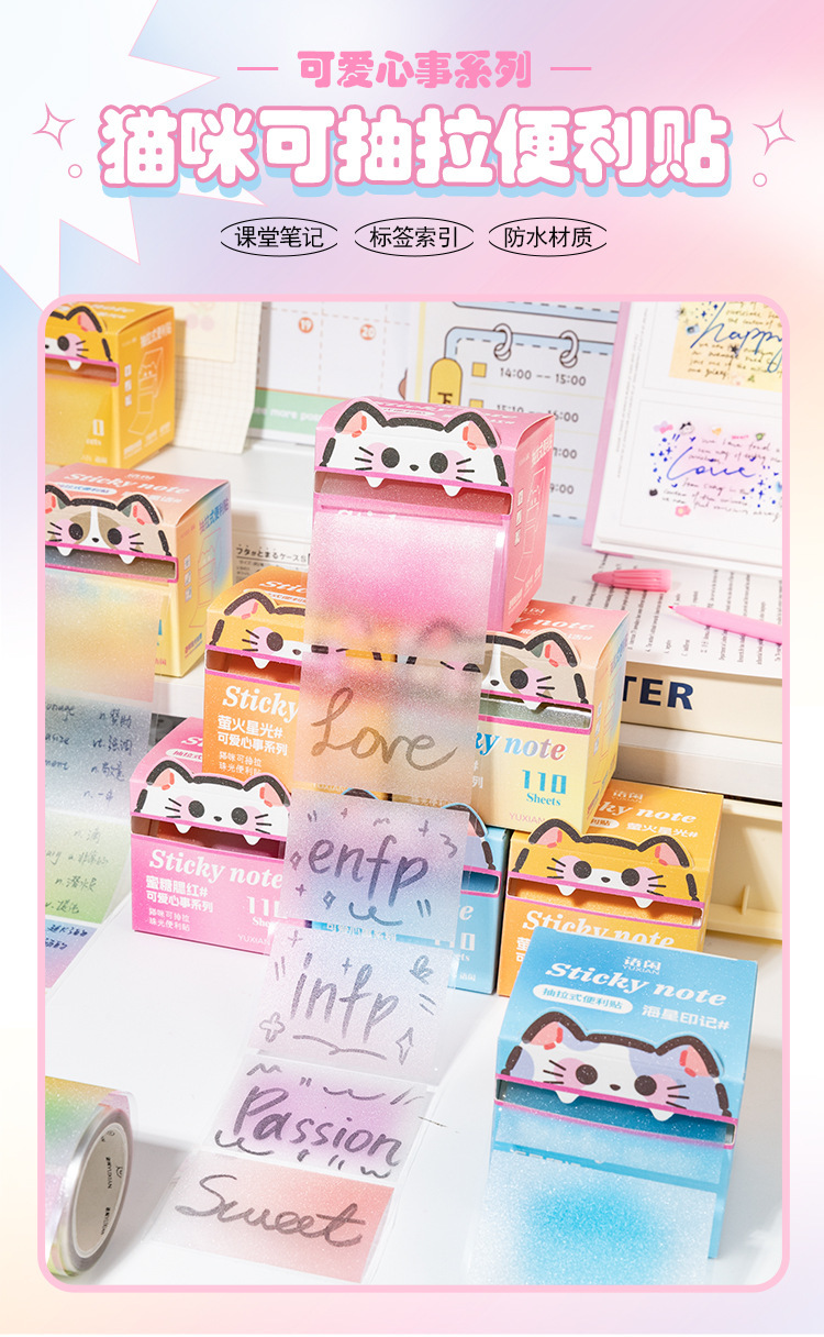 Yuxian의 당기기 가능한 진주빛 스티커 메모, 귀여운 고양이 오류 메모 스티커, 학생용 라벨 색인