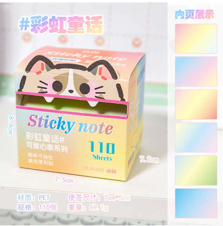 Yuxian의 당기기 가능한 진주빛 스티커 메모, 귀여운 고양이 오류 메모 스티커, 학생용 라벨 색인스토어 가기