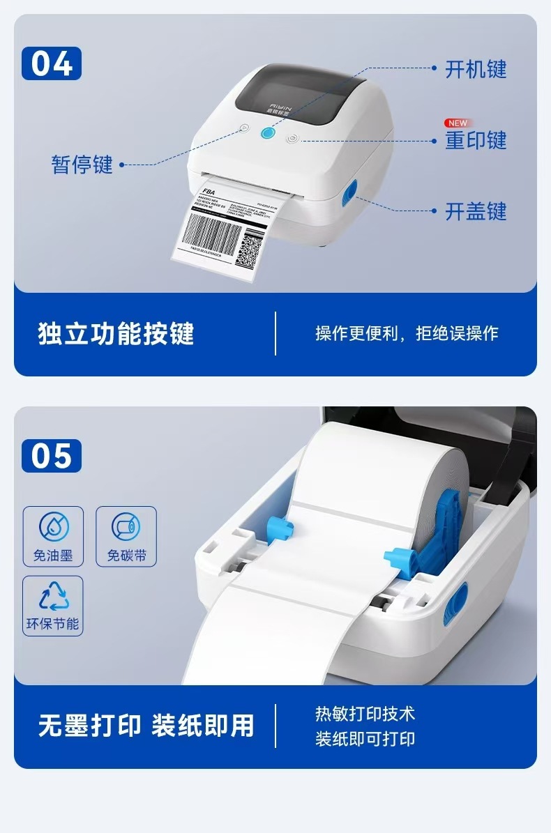 4inch E-Post Amazon FBA 자체 접착 라벨 프린터 국경 간 전자 상거래 주문 열전 사 프린터 사용자 정의스토어 가기