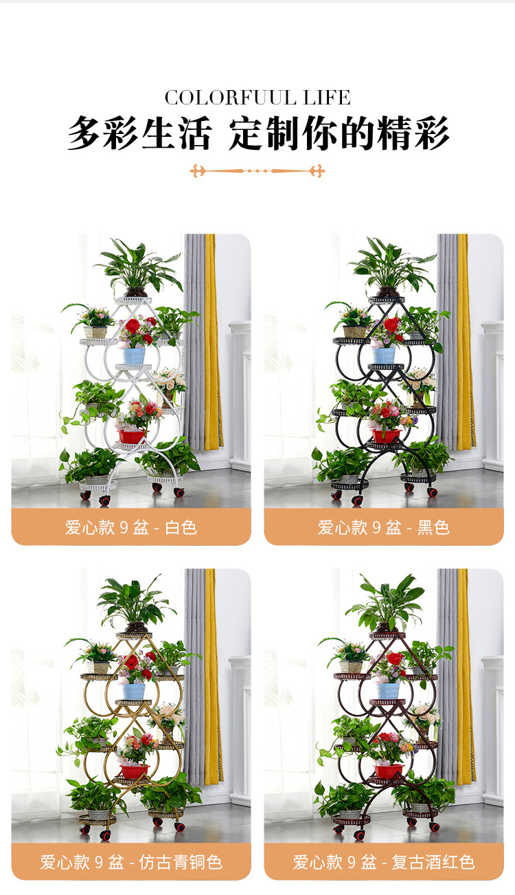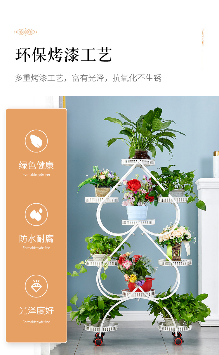 꽃 선반 실내 철제 다층 보관함 홈 발코니 다육물방울꽃 화분 선반 간단한 거실 바닥에 붙은 버들나무
