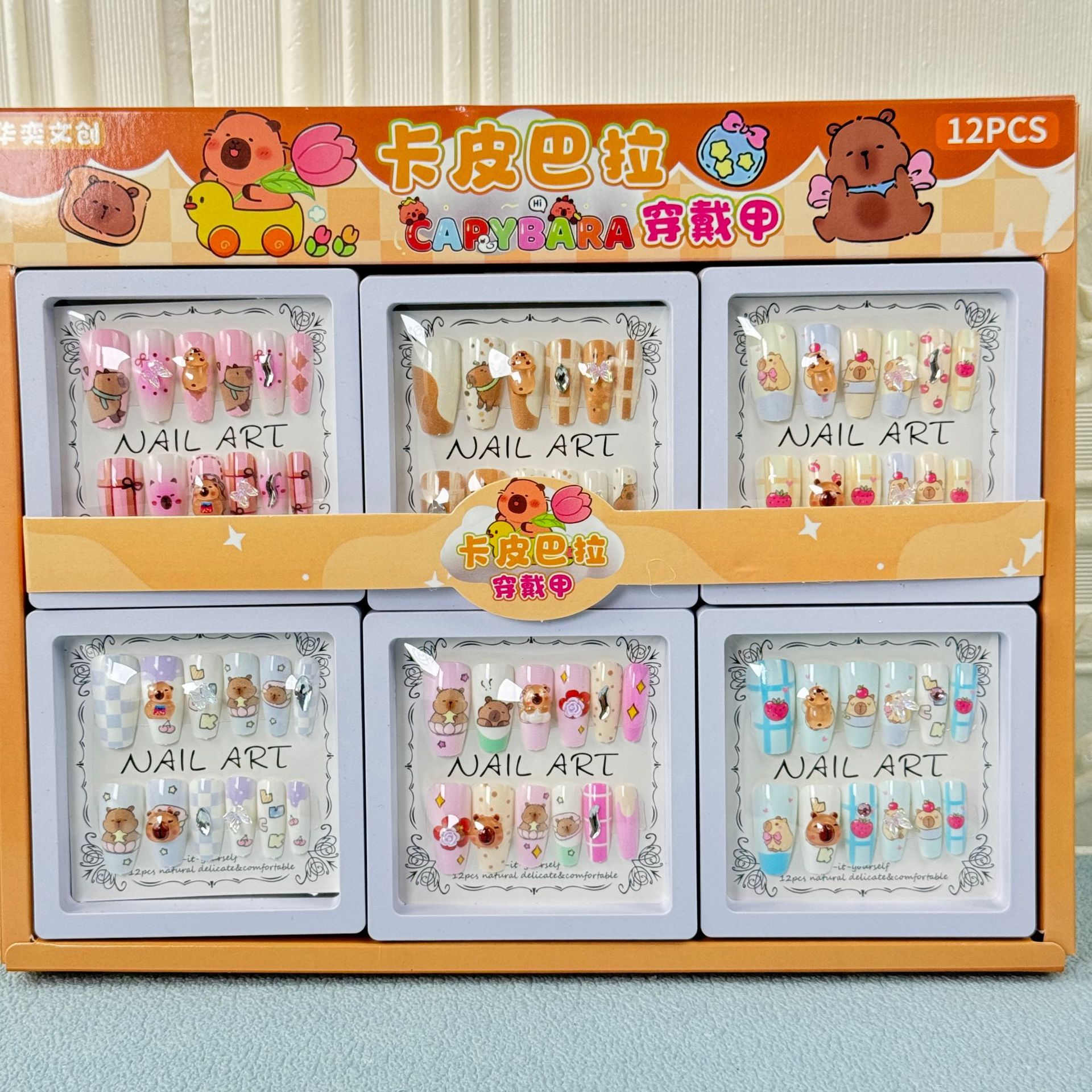 귀엽고 예쁜 카피바라 매니큐어 웨어러블 네일 커피 베어 카피바라 3D 입체 네일 스티커 경품스토어 가기