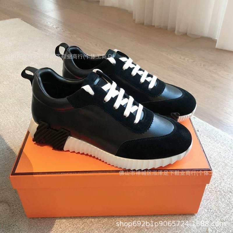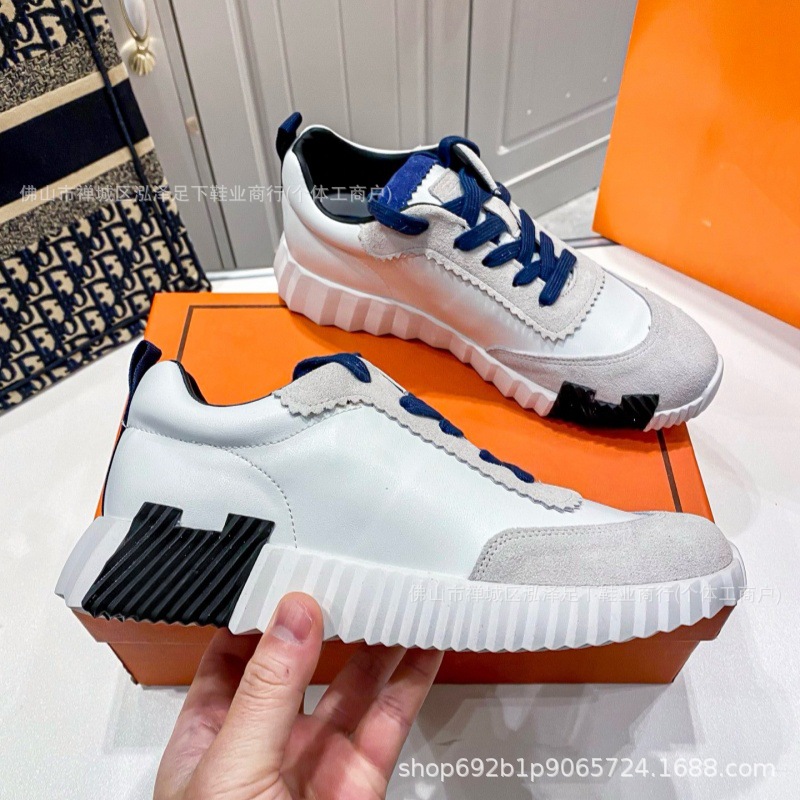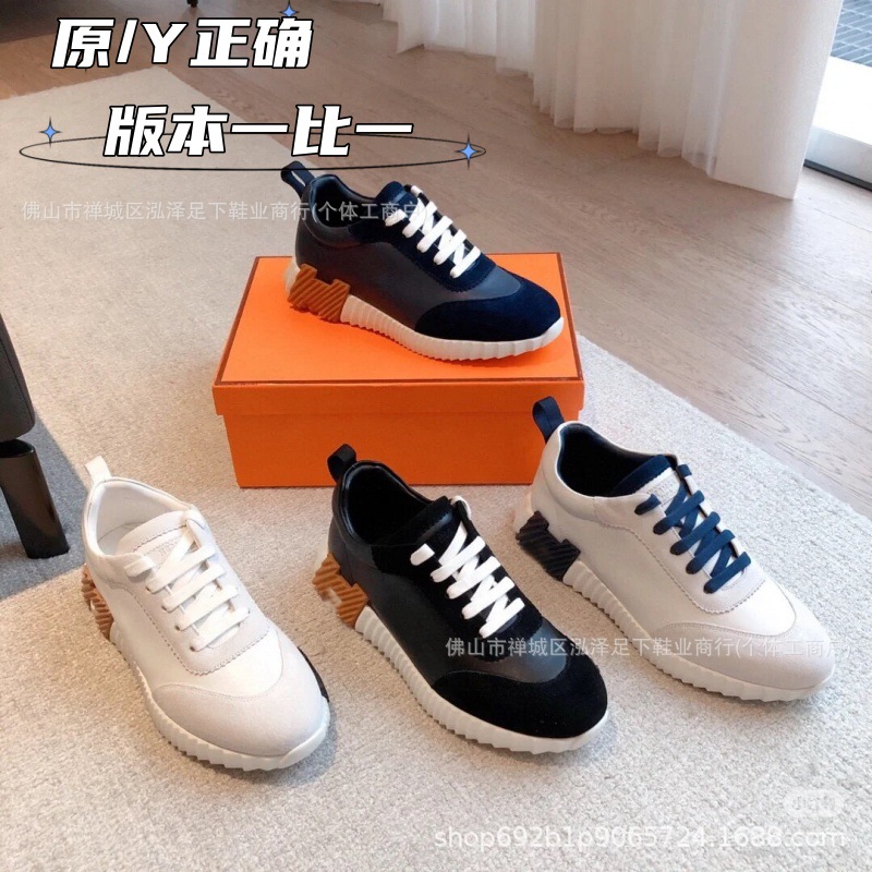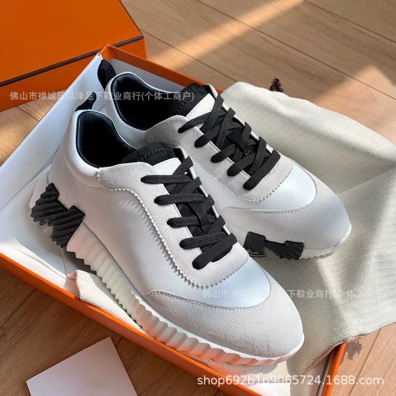 여성을 위한 새로운 h 캐주얼 운동화, 천연 가죽 흰색 신발, 두꺼운 밑창 커플 팬더 신발, 남성용 플랫 통기성 h 운동화스토어 가기